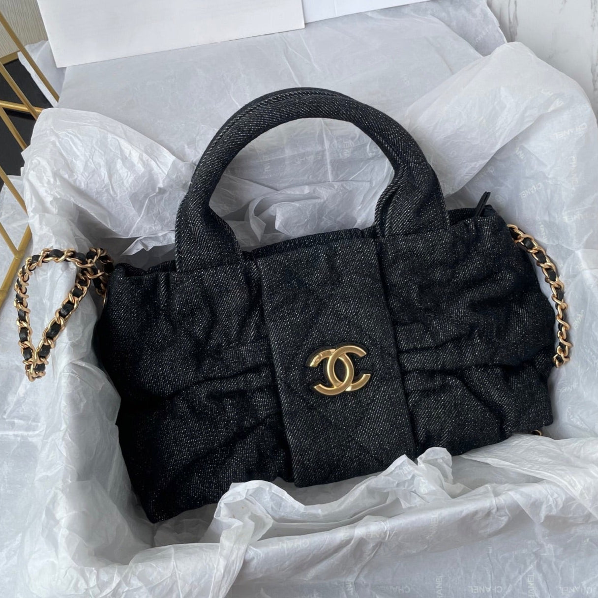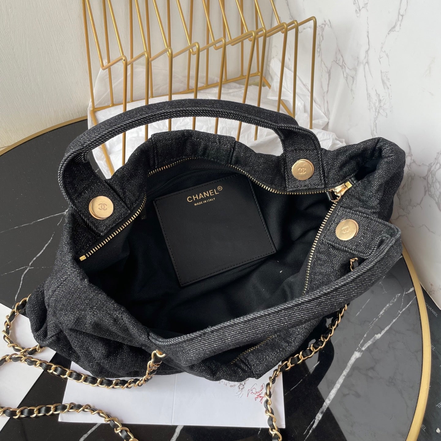 Chanel 25 Tote Bag Navy Blue 48cm Denim Leather 289494