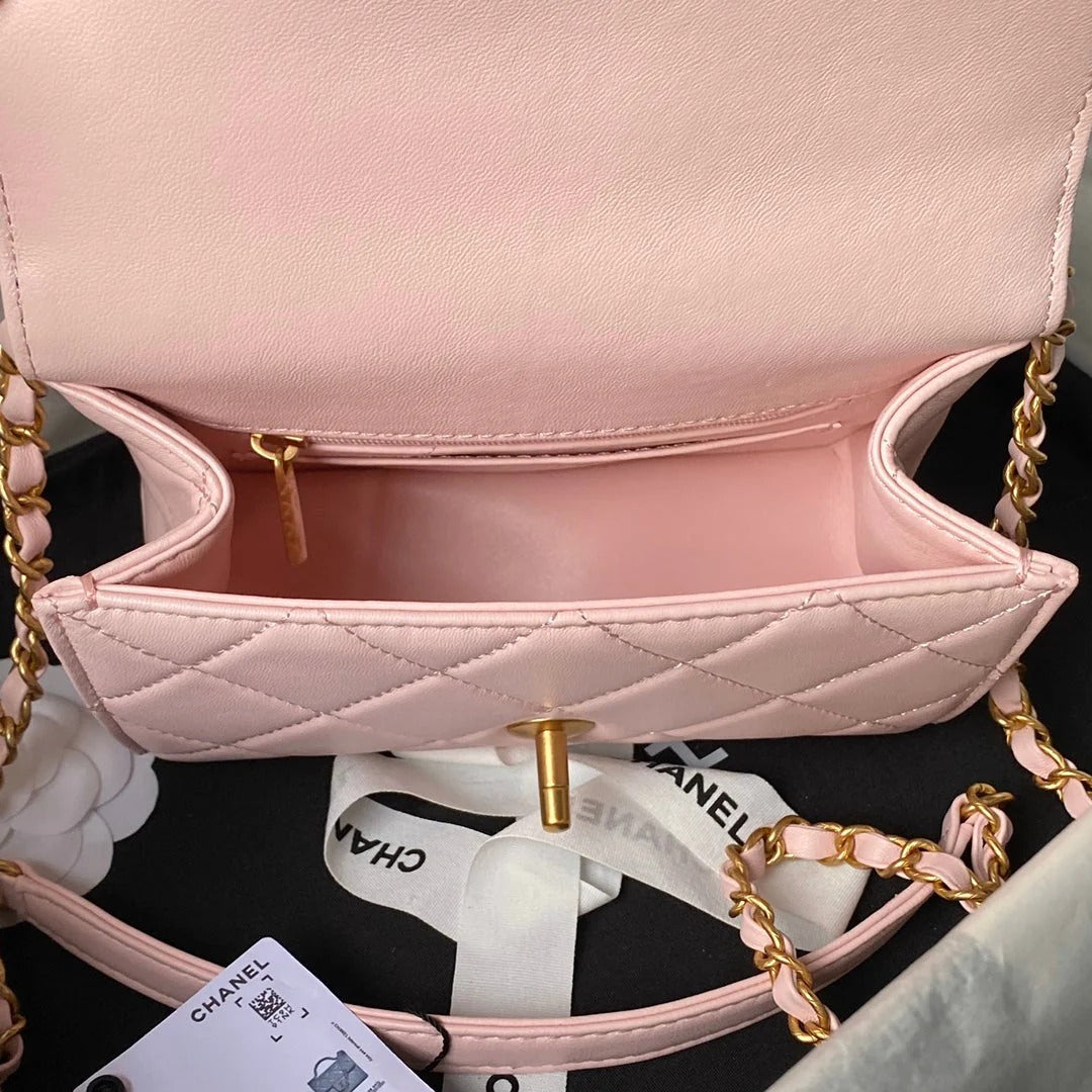 CC 25S FLAP BAG 18 CM IN LIGHT PINK LAMBSKIN WITH TOP HANDLE