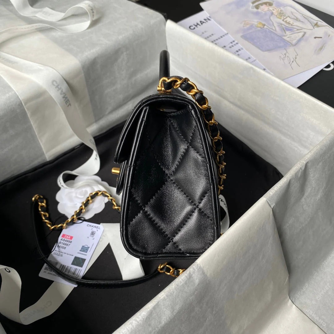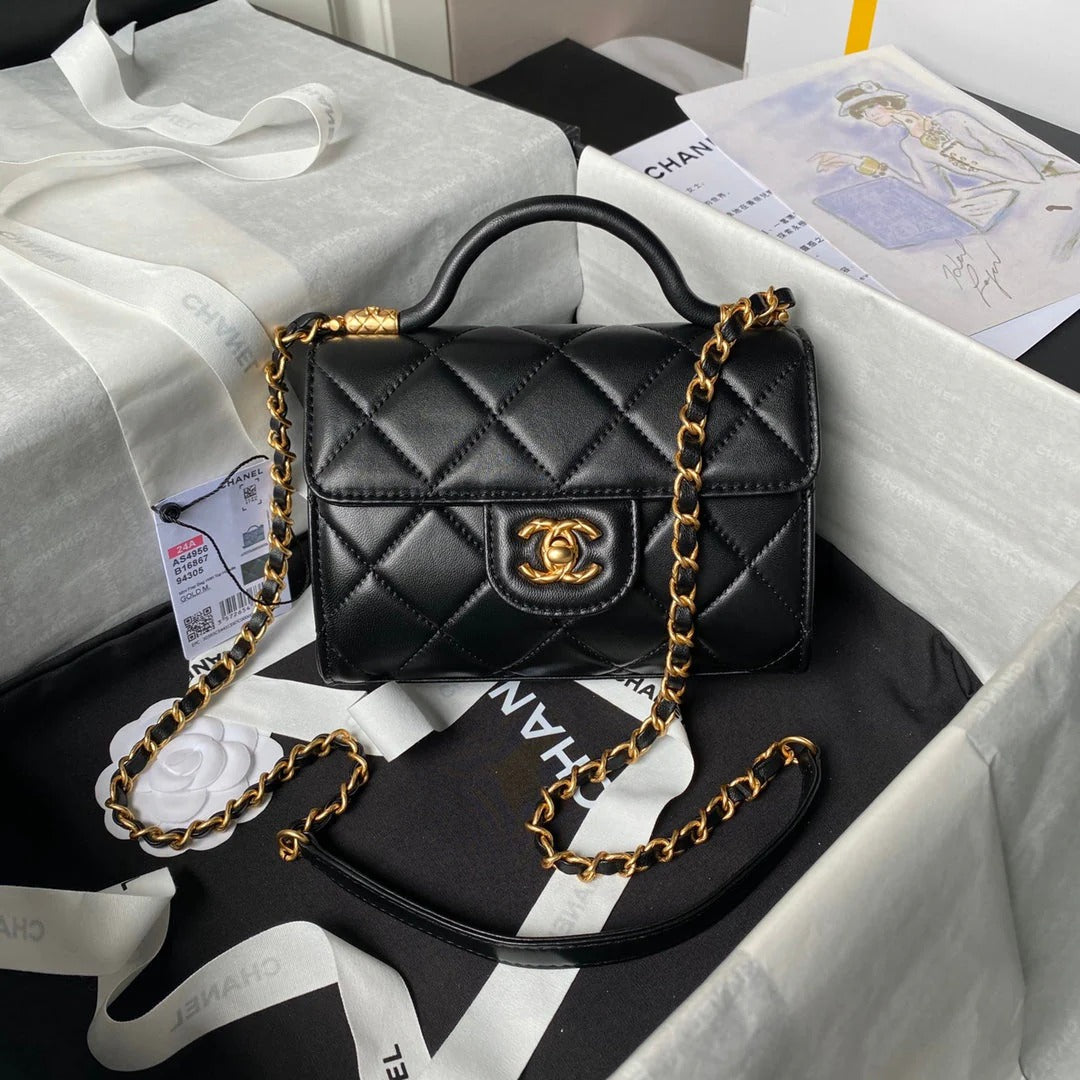 CC 25S FLAP BAG 18 CM IN BLACK LAMBSKIN WITH TOP HANDLE