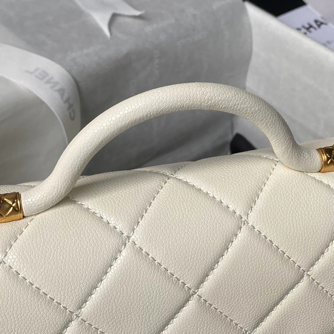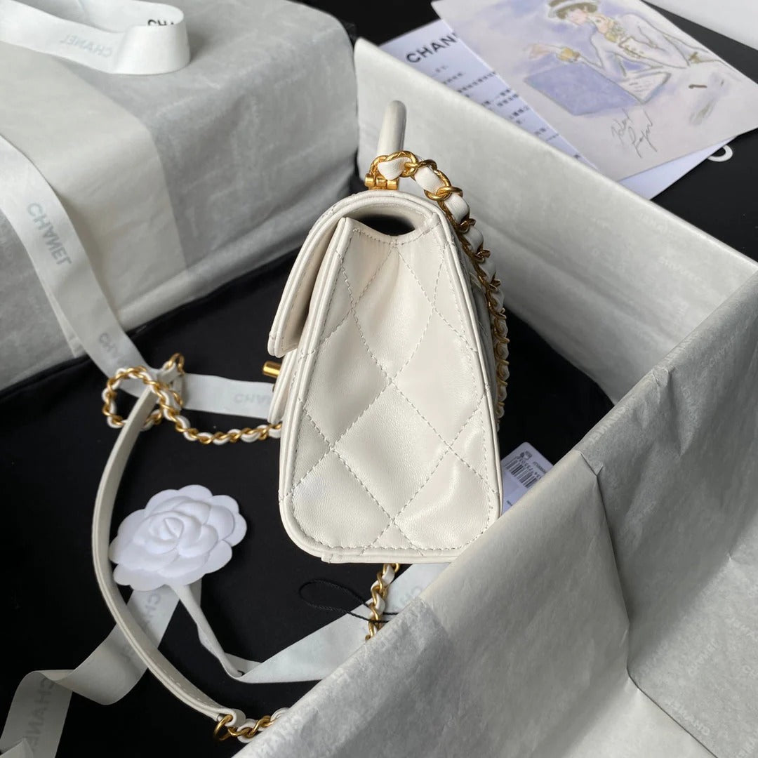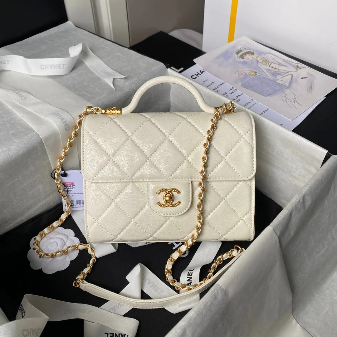 CC 25S FLAP BAG 21 CM IN CREAM WHITE GRAINED LAMBSKIN WITH TOP HANDLE