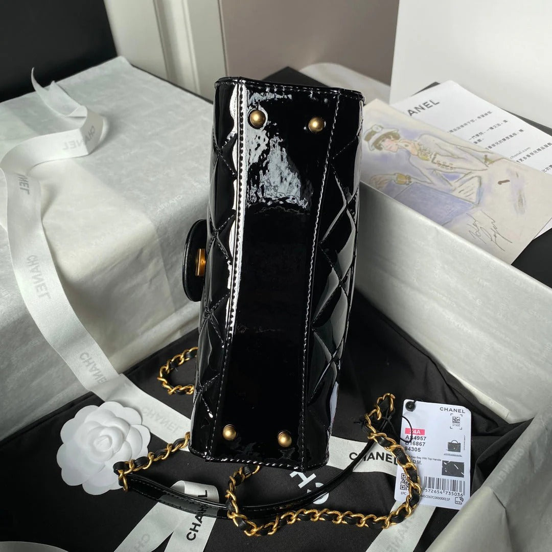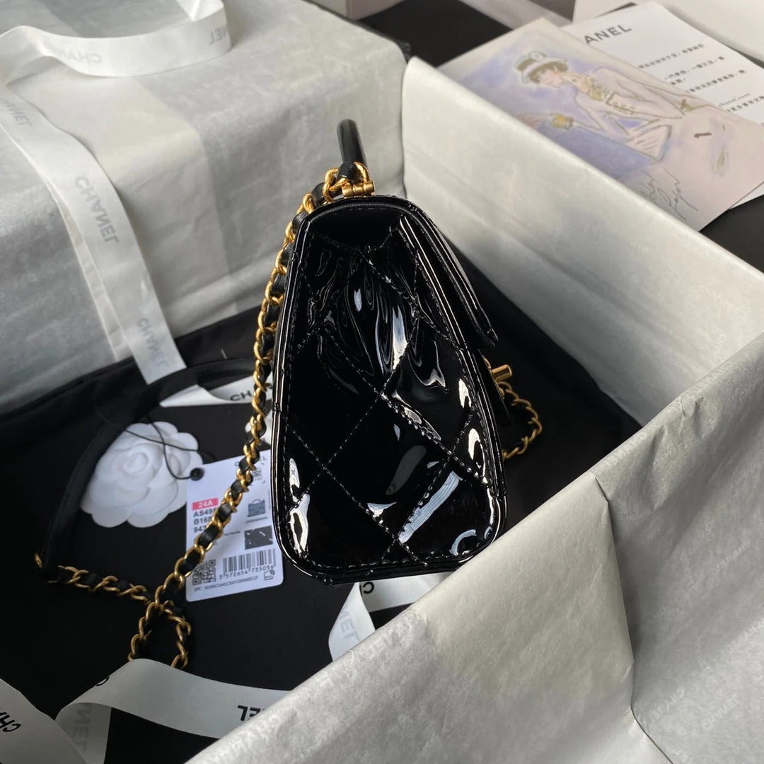 CC 25S FLAP BAG 21 CM IN BLACK PATENT LAMBSKIN WITH TOP HANDLE