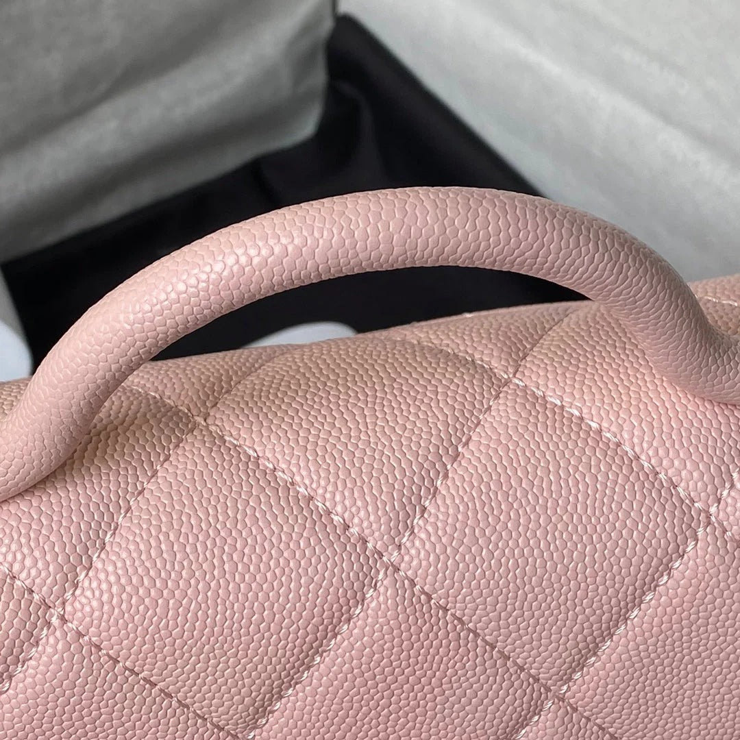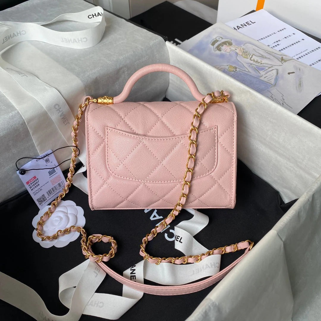 CC 25S FLAP BAG 21 CM IN LIGHT PINK GRAINED LAMBSKIN WITH TOP HANDLE