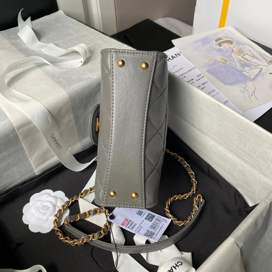 CC 25S FLAP BAG 18 CM IN DARK GREY LAMBSKIN WITH TOP HANDLE