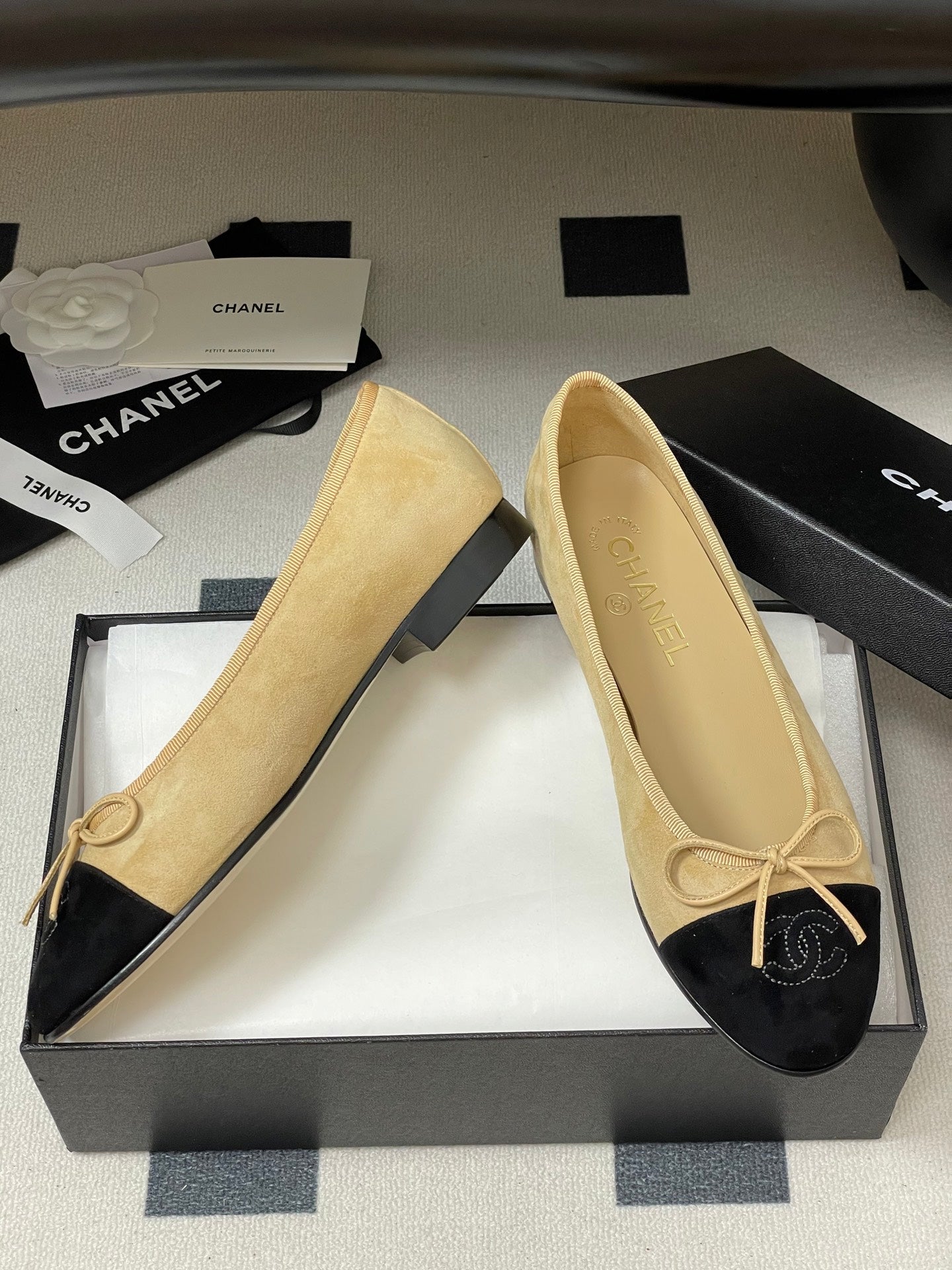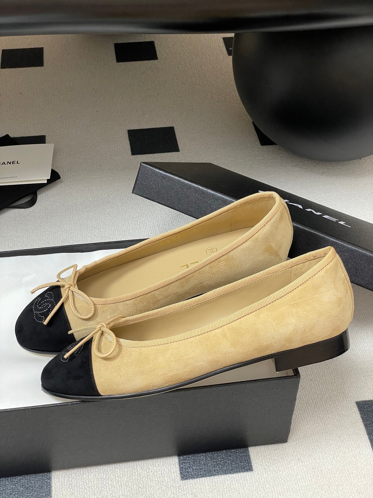 CC 25 Ballet Flat Beige Black Suede 393999