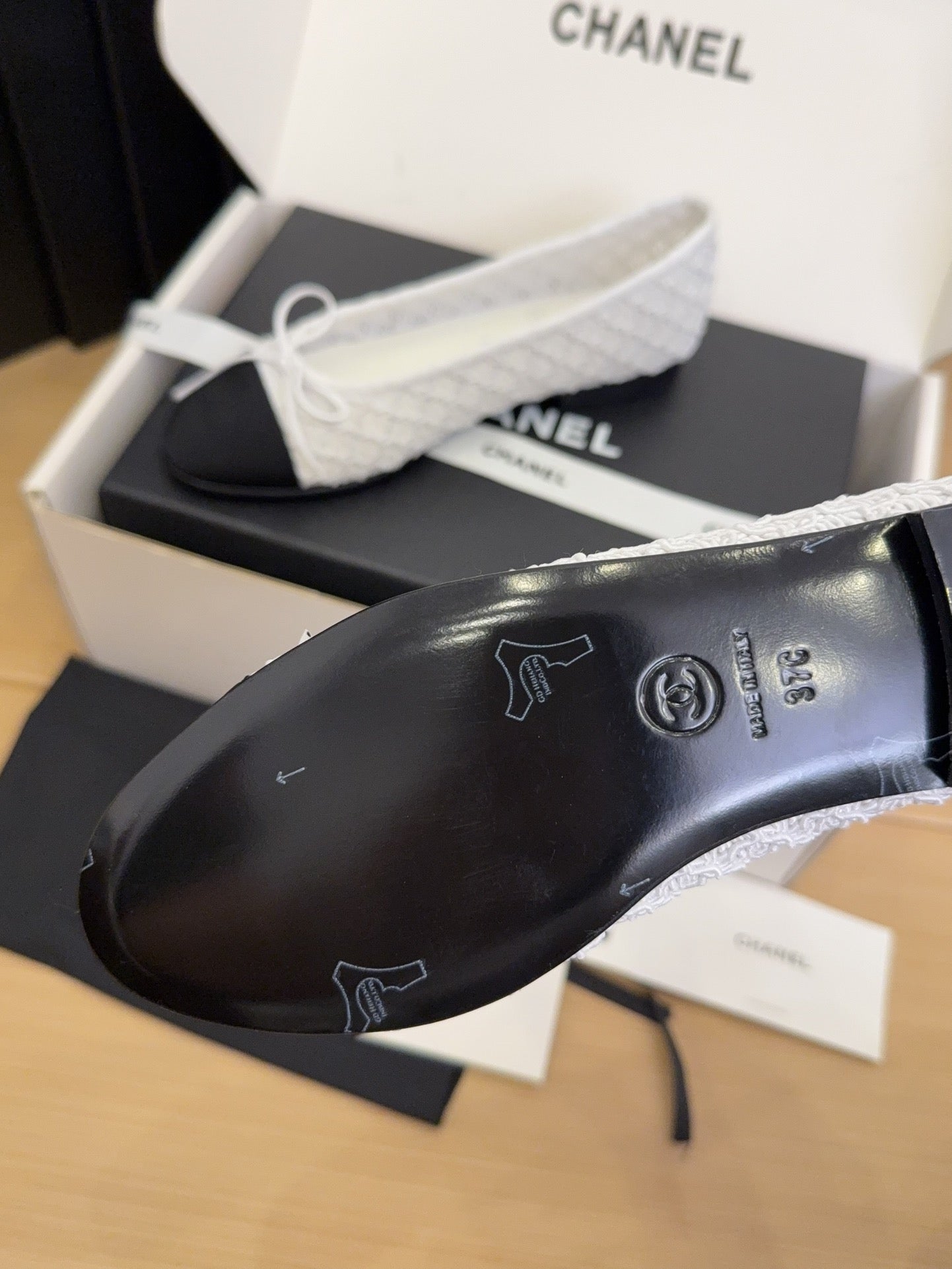 CC 25 Ballet Flats White Mesh Fabric Black Grosgrain 277707