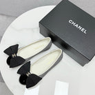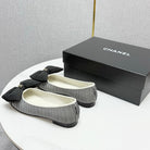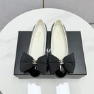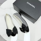 CC 25 Bow Ballet Flats Black White Canvas Striped Pattern And Grosgrain 368809