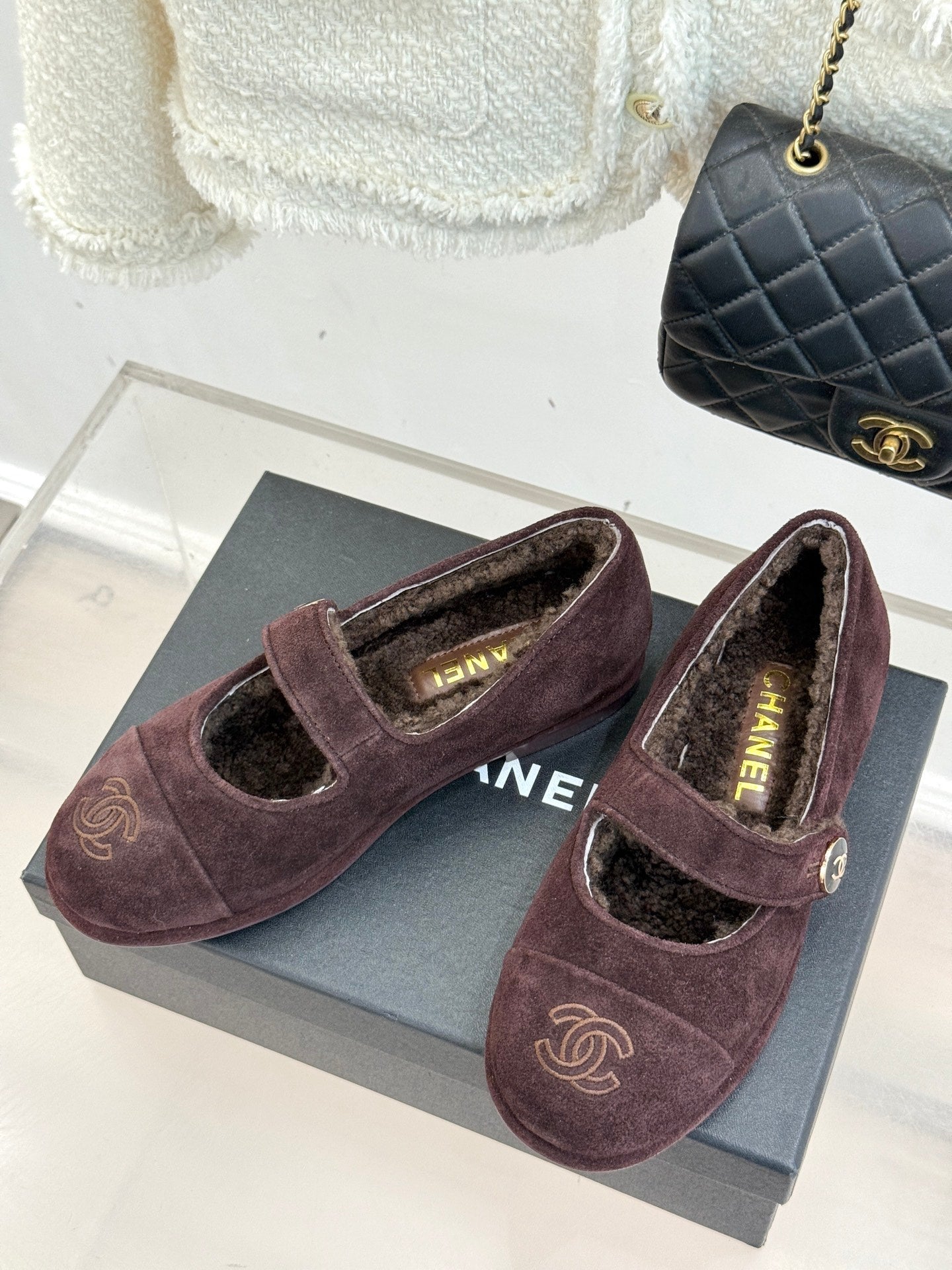 CC 25A Mary Janes Chocolate Suede And Lambswool 404665