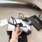 CC 25b Fall-Winter Mary Janes 15mm White Black Mesh & Grosgrain 415779