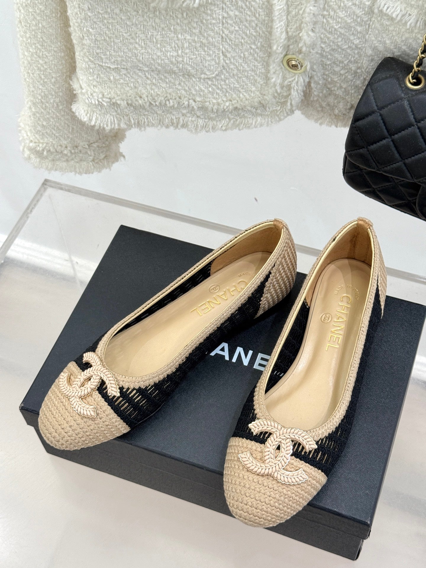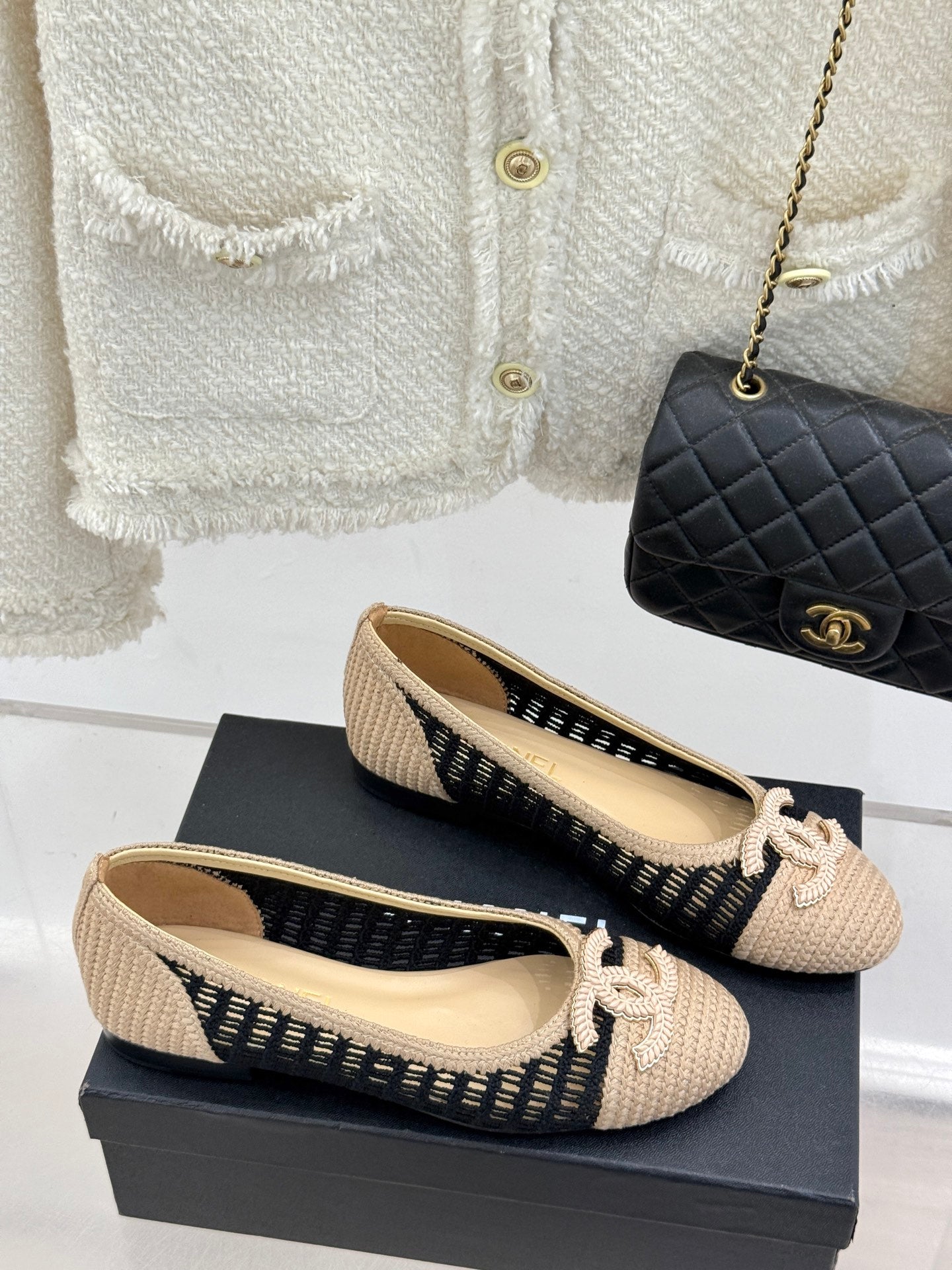 CC 25P Hollow Double C Ballet Flats 15mm Beige Black Raffia 265640