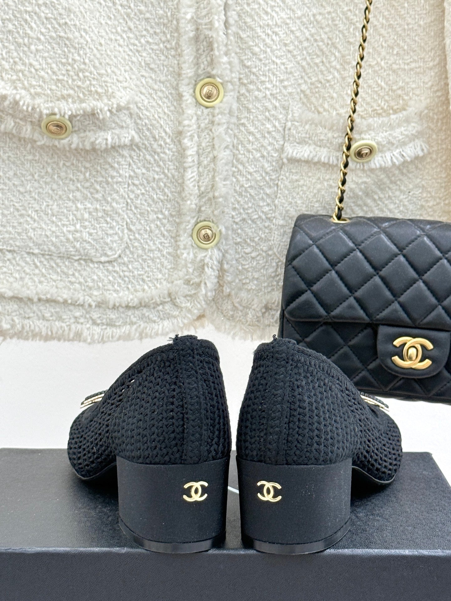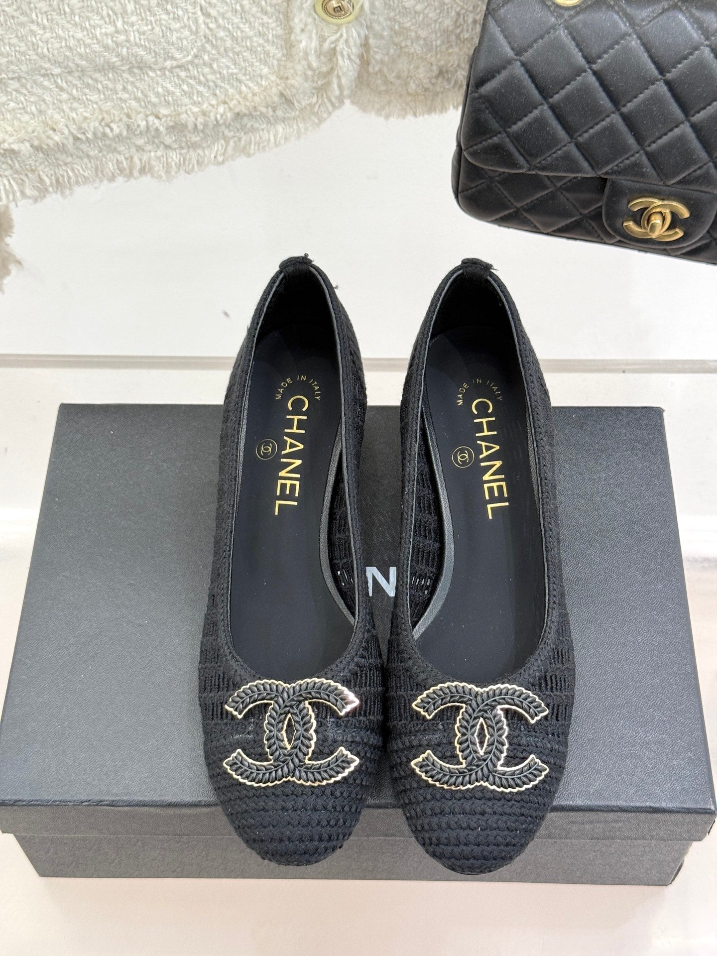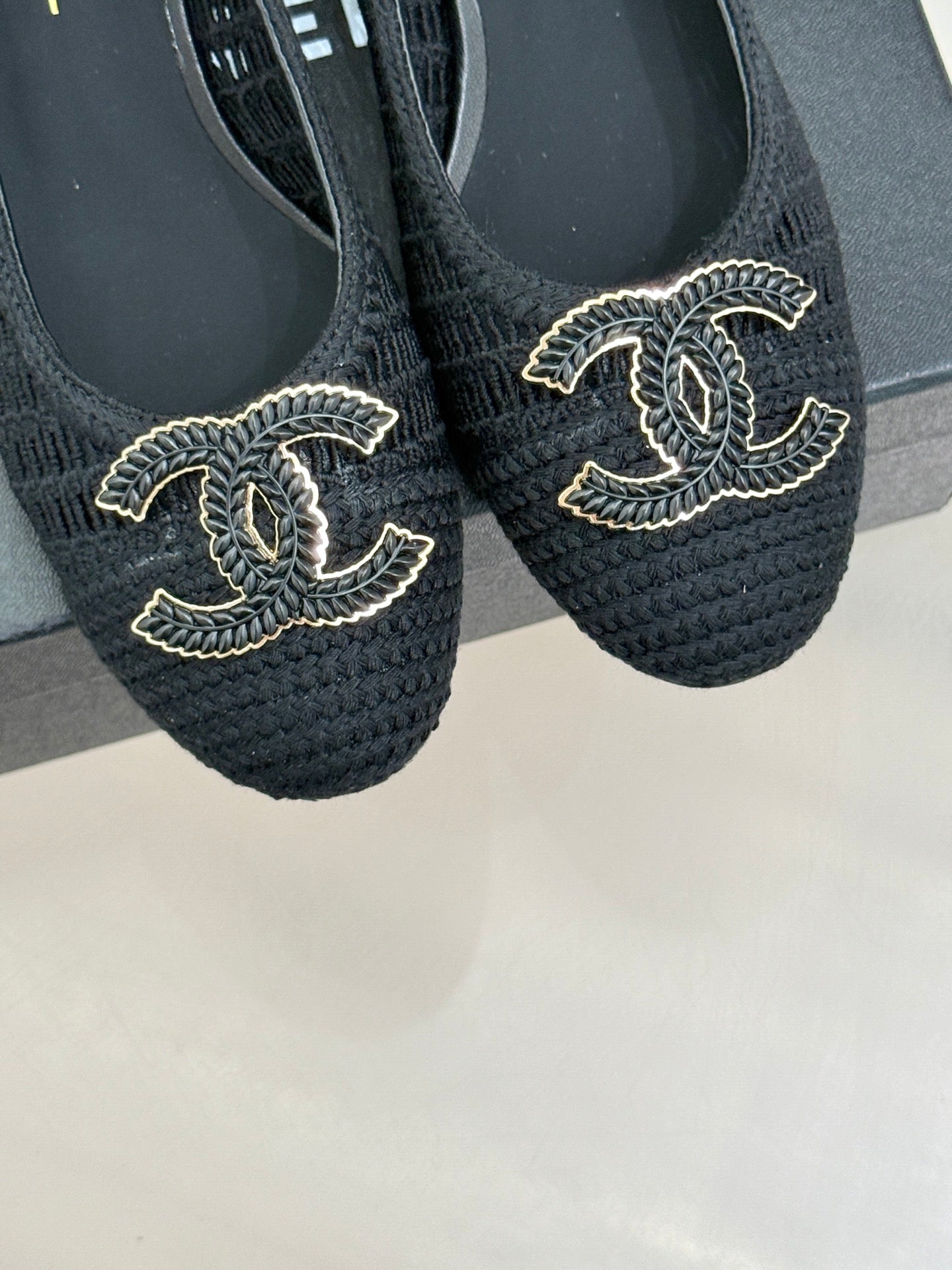 CC 25P Hollow Double C Ballet Flats 50mm Black Raffia 265639
