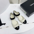 CC Quilted Cap Toe Ballerina Flats Black White Lamskin & Calfskin