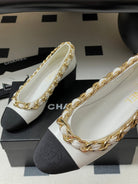 Chanel 25A 55mm Pump Big Chain Double C White Black Sheepskin 393814