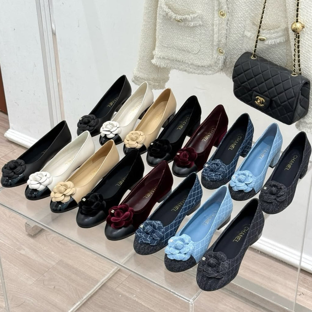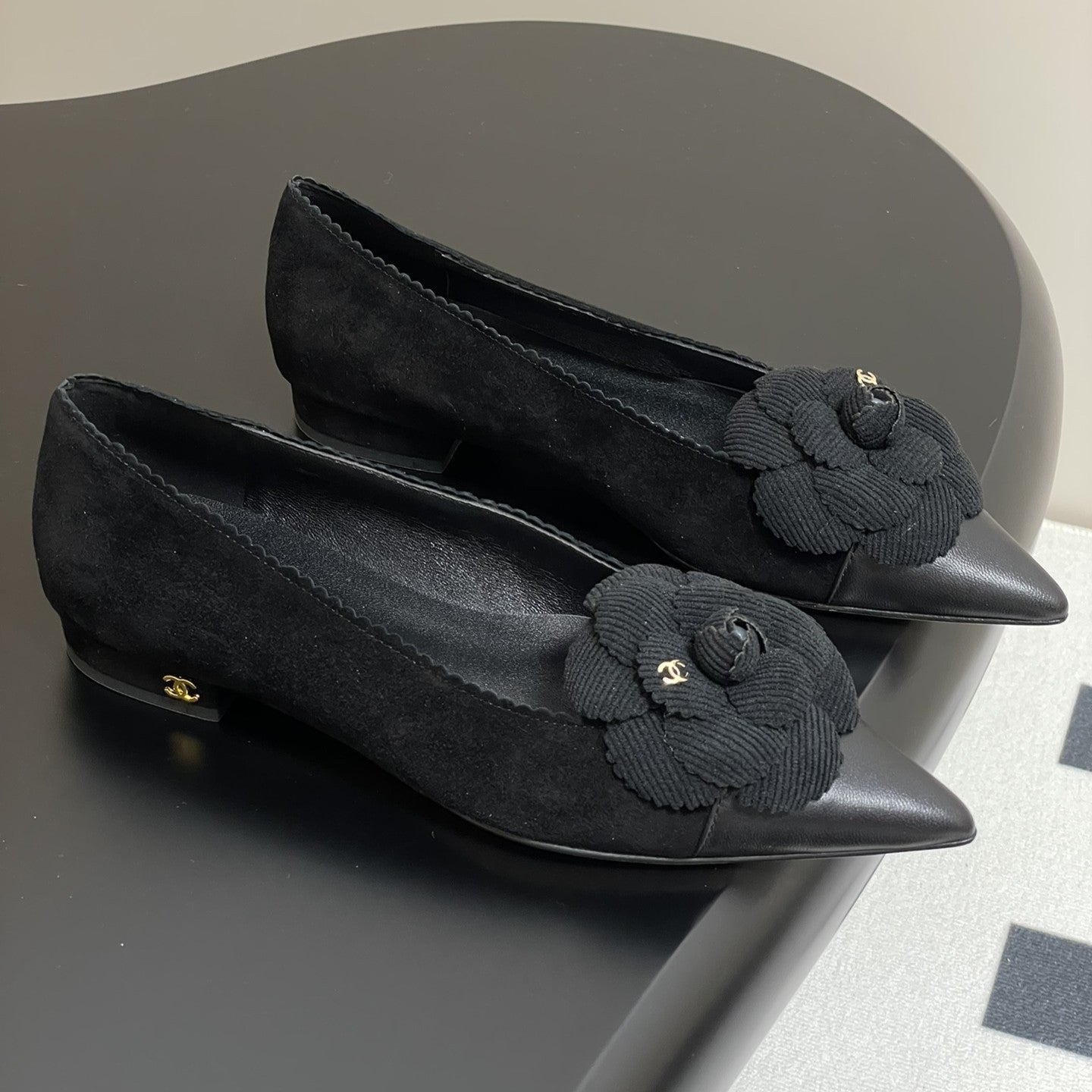 CC 25C Classic Camellia Pointed High Heels Flat 15mm Black Suede 247610