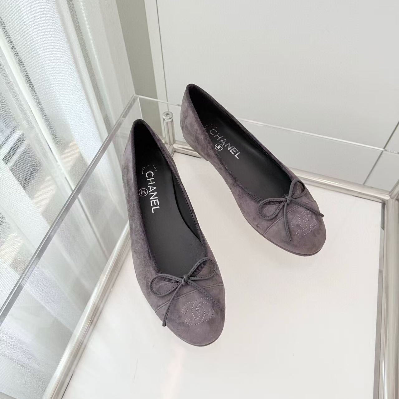 Chanel 25 Ballet Flat Grey-taupe Suede 469253