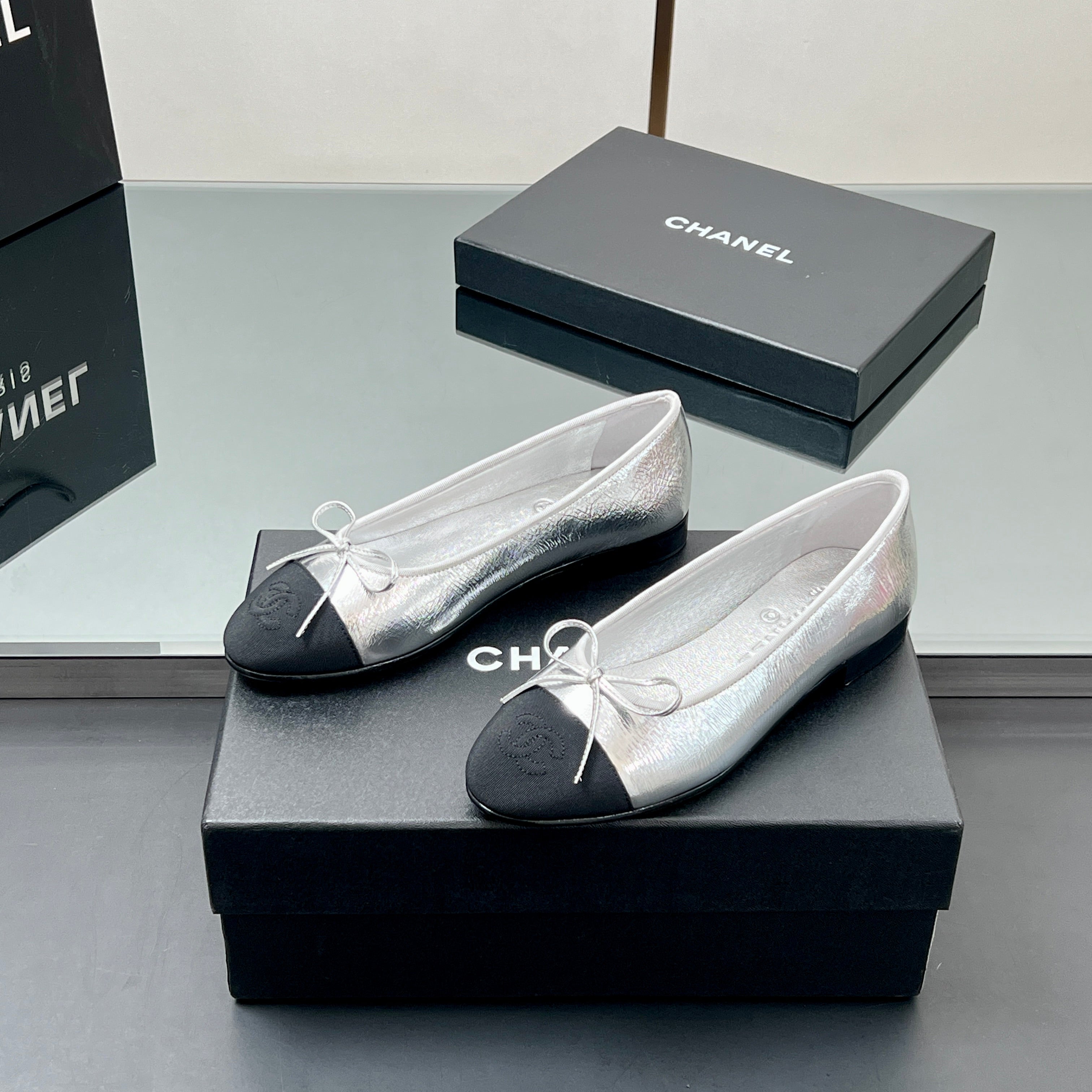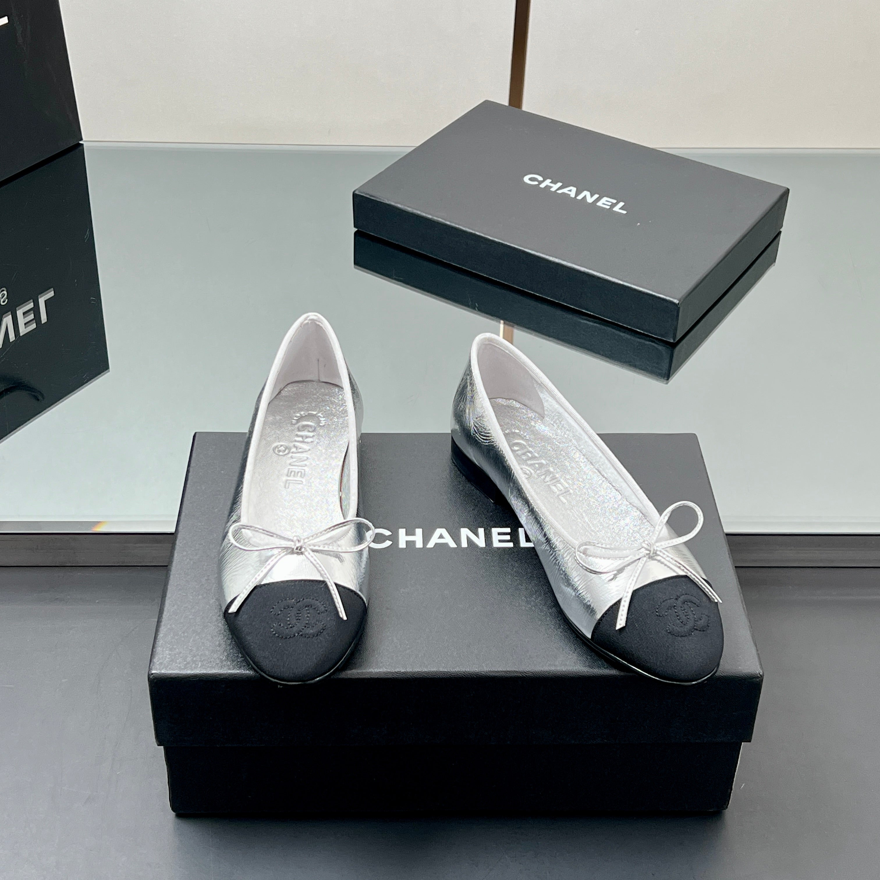 CC Ballet Flats 20mm Silver Metallic Sheepskin Black Grosgrain 266677