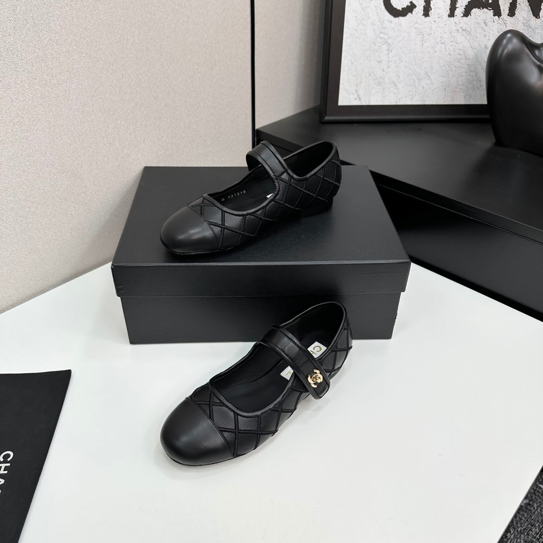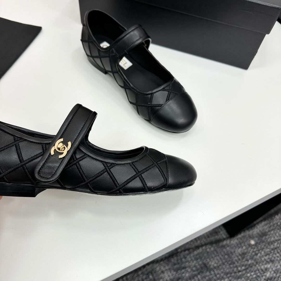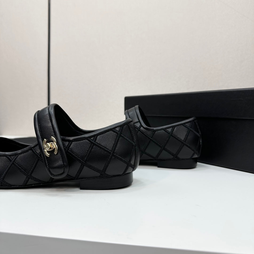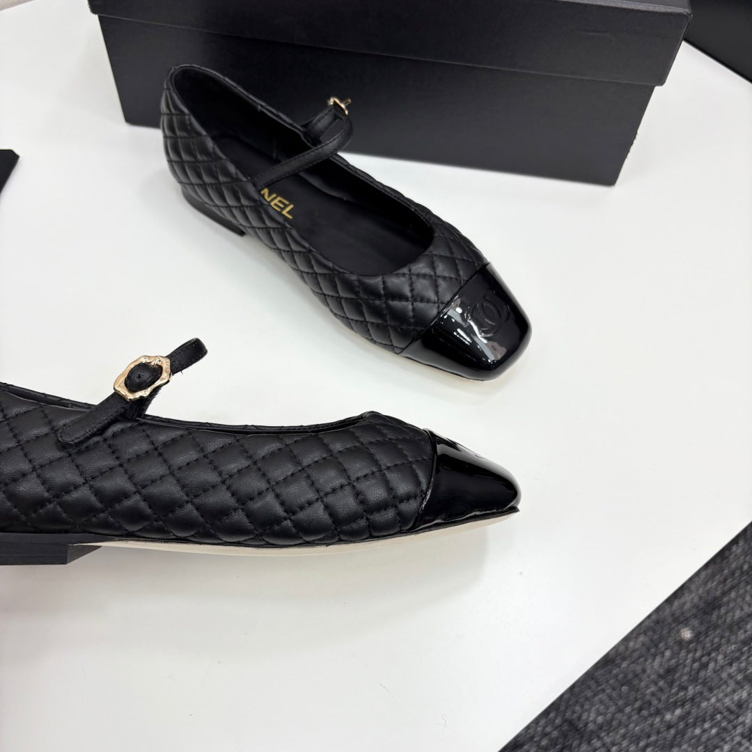 CC 25 Cambon Ballet Flat Black Quilted Calfskin