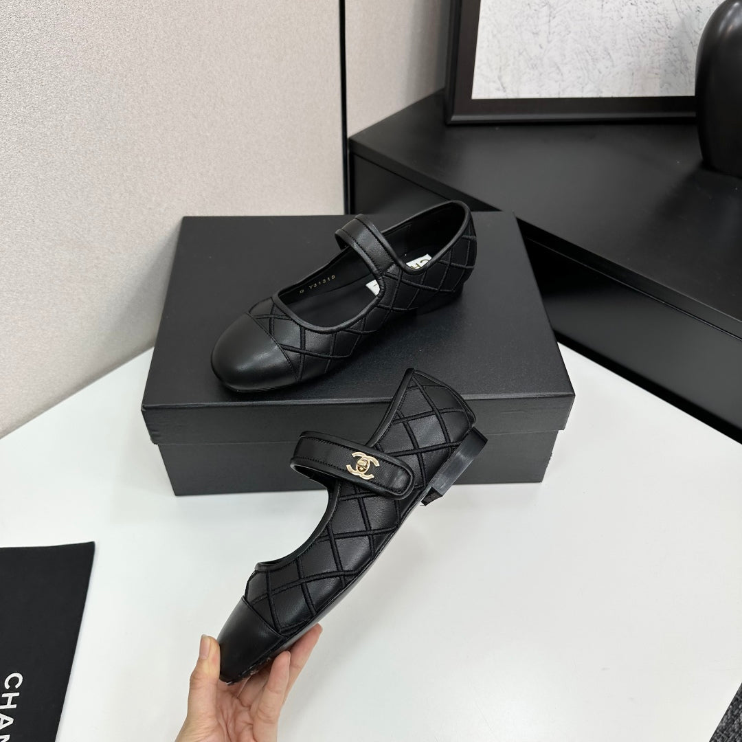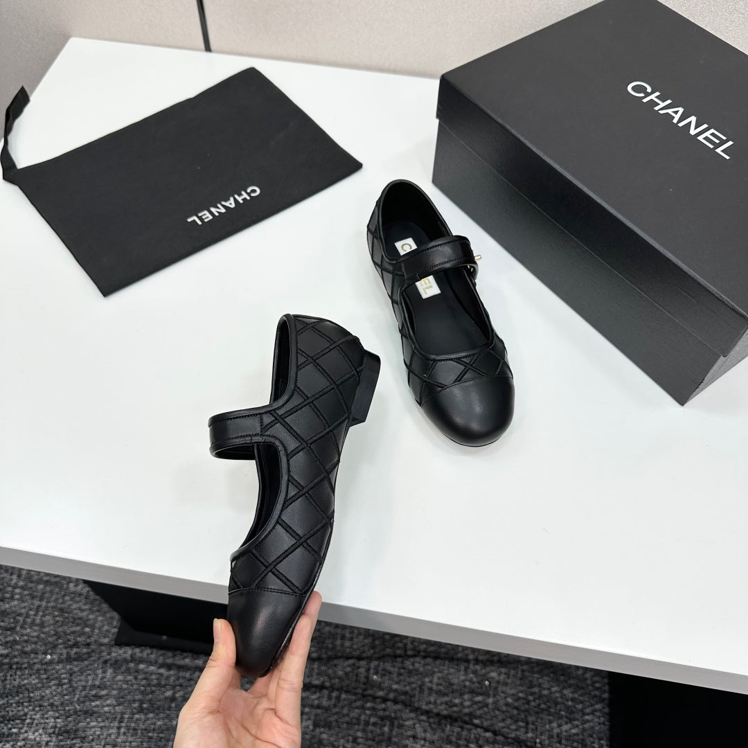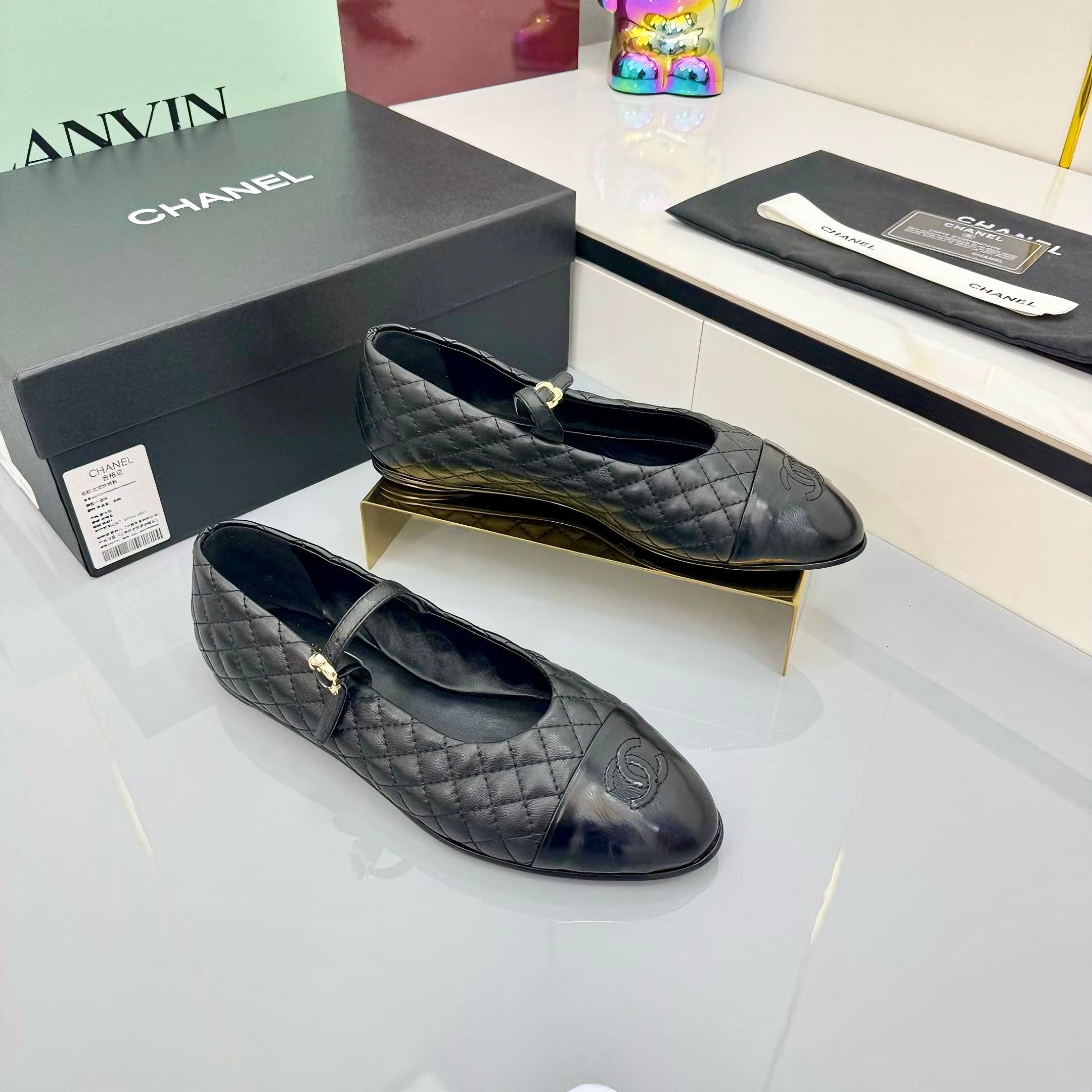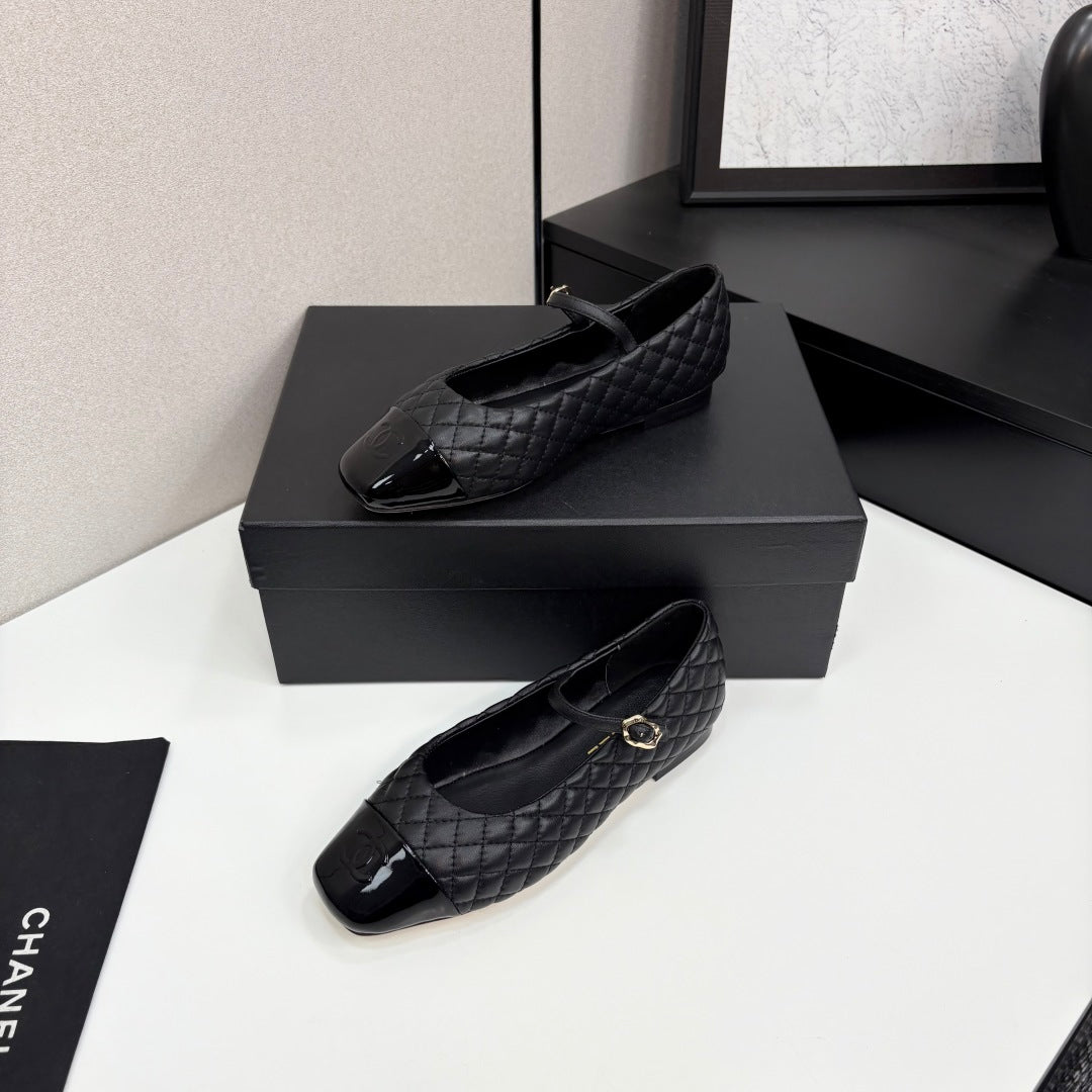 CC 25 Cambon Ballet Flat Black Quilted Calfskin