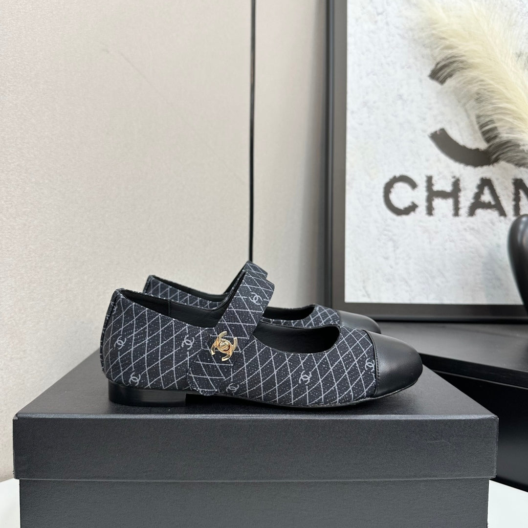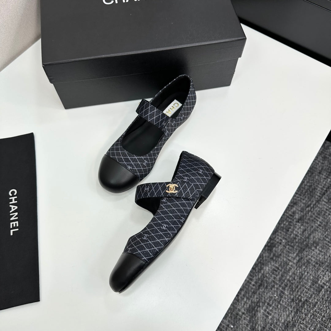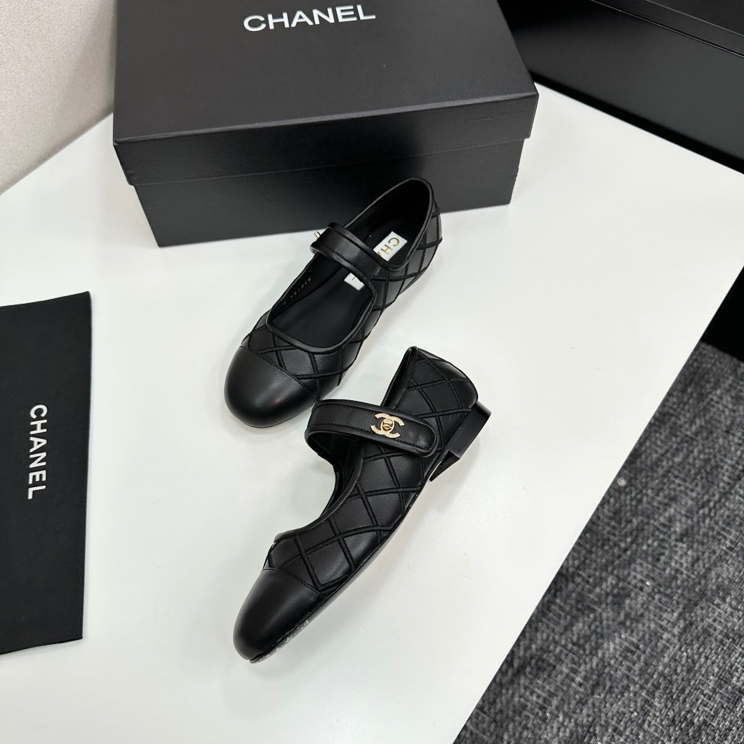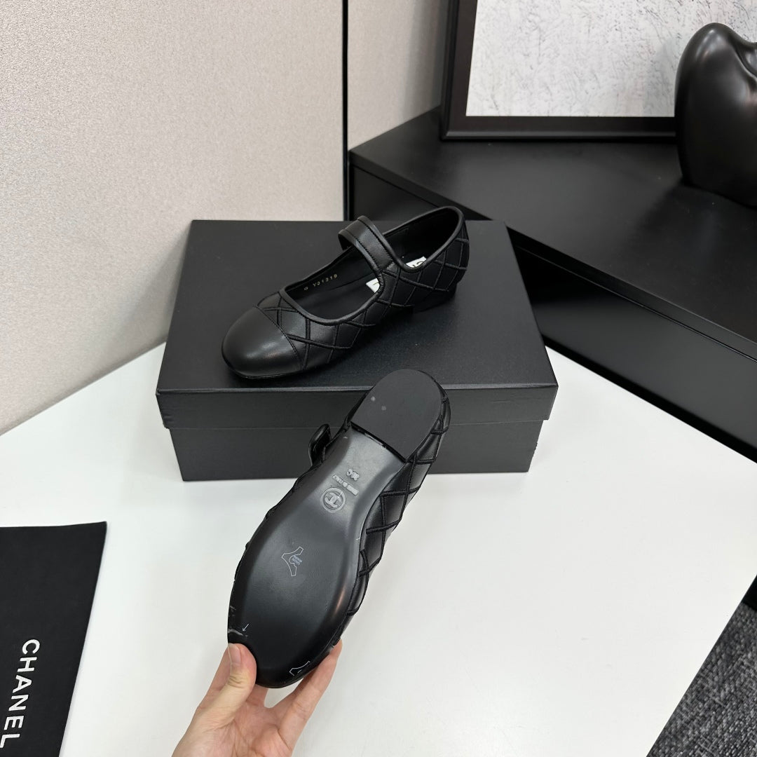 CC 25 Cambon Ballet Flat Black Quilted Calfskin