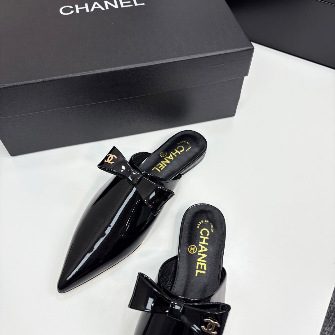 CC 25 Point-Toe Flat Mule Black Patent Calfskin 352472