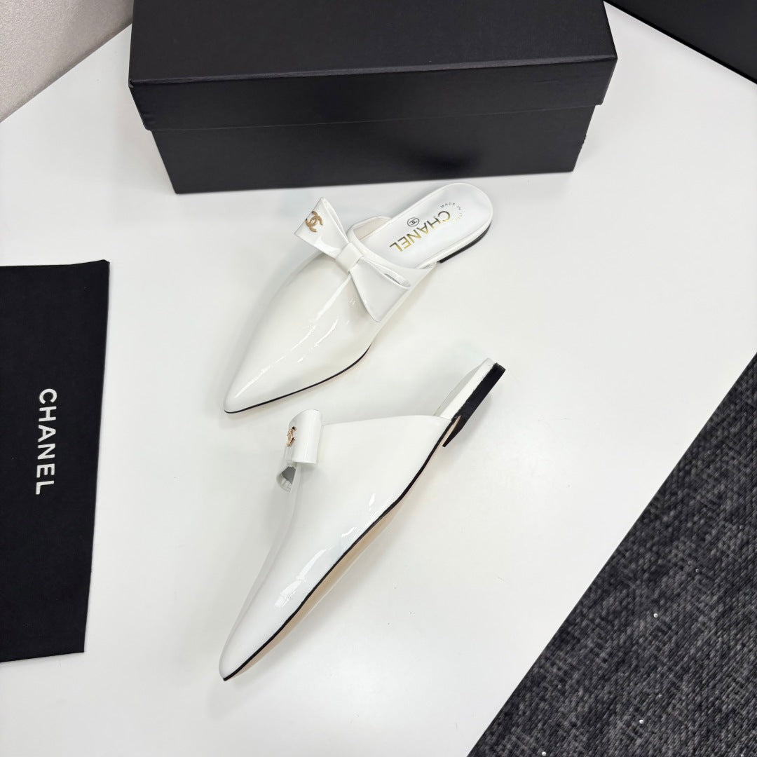 CC 25 Point-Toe Flat Mule White Patent Calfskin 352473