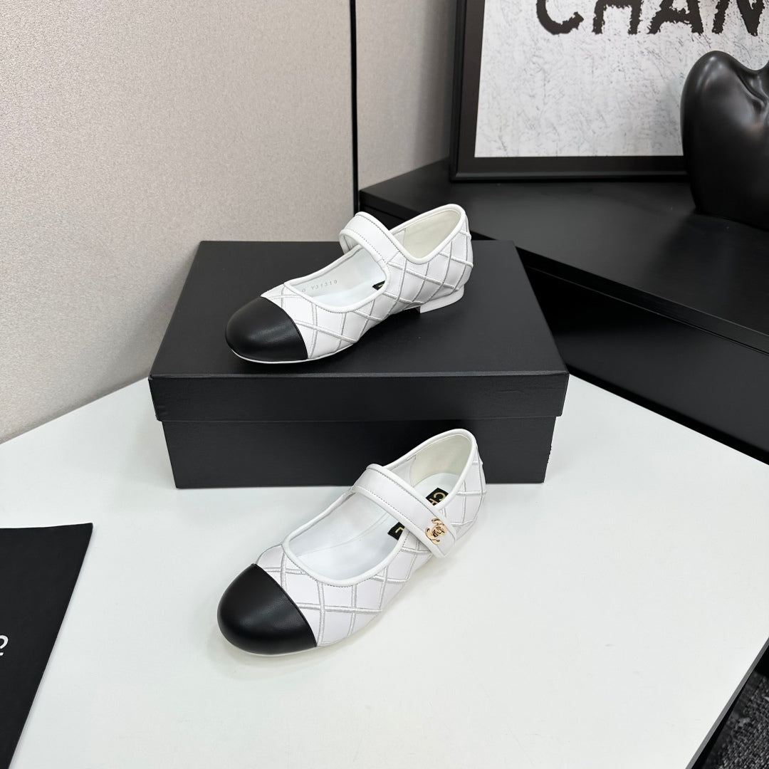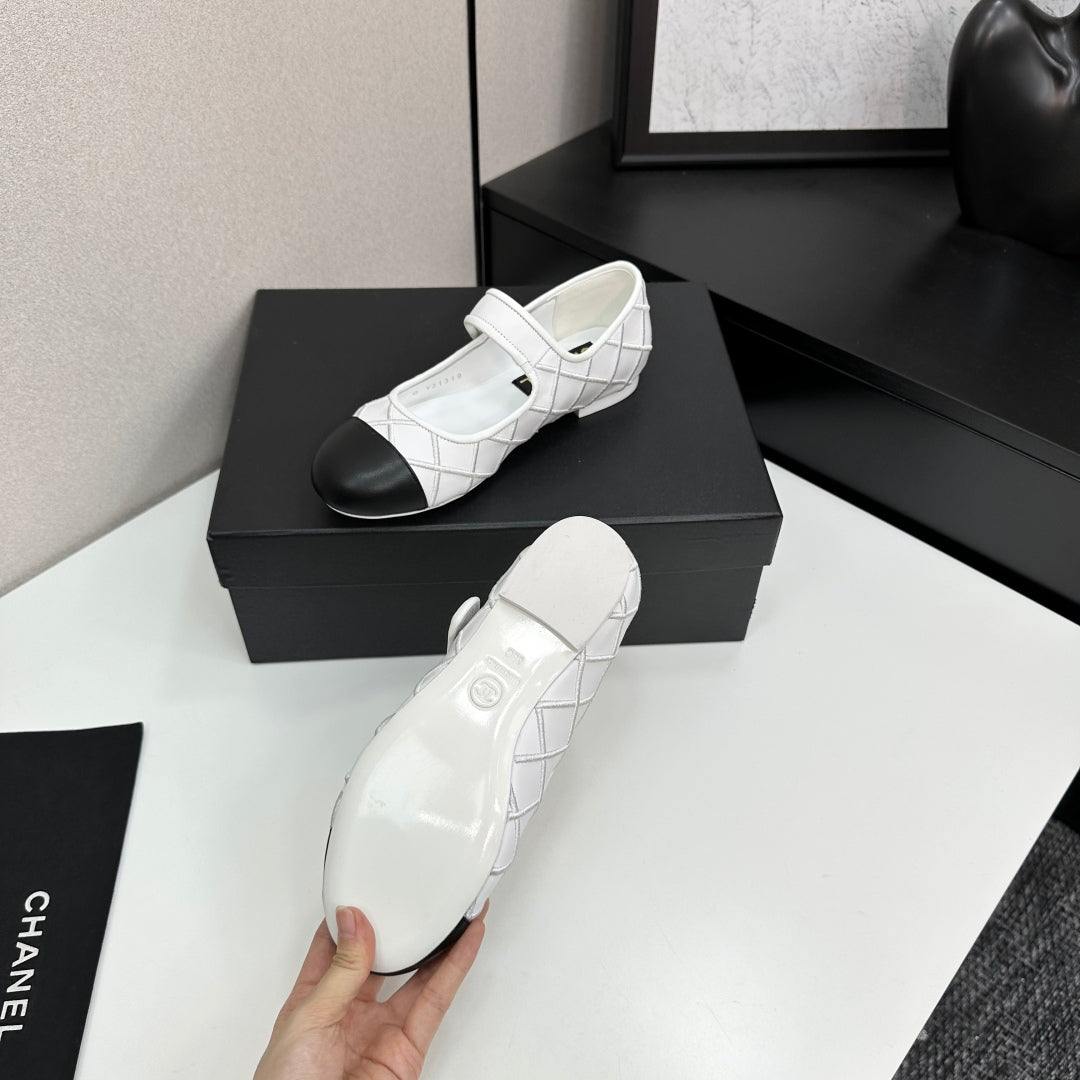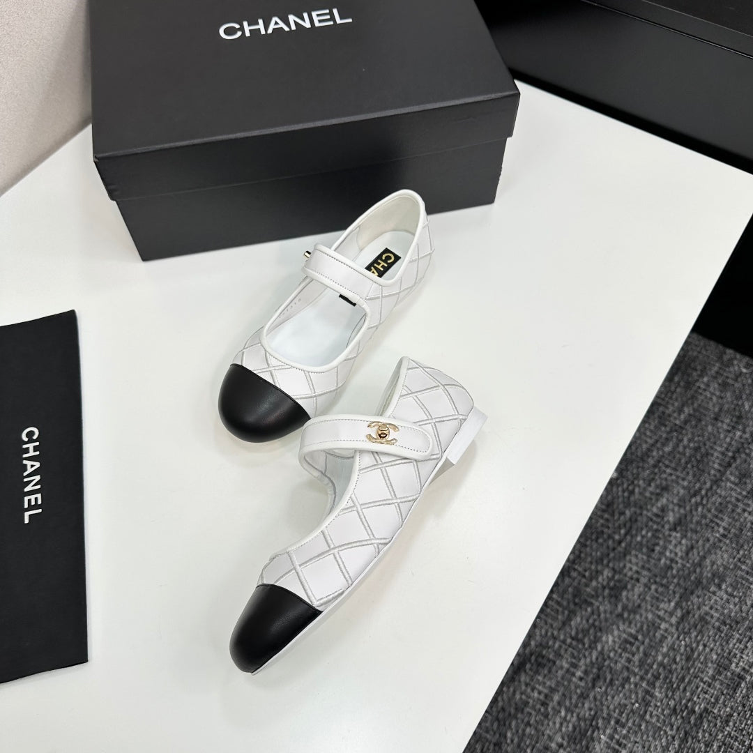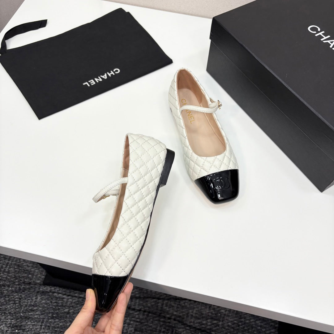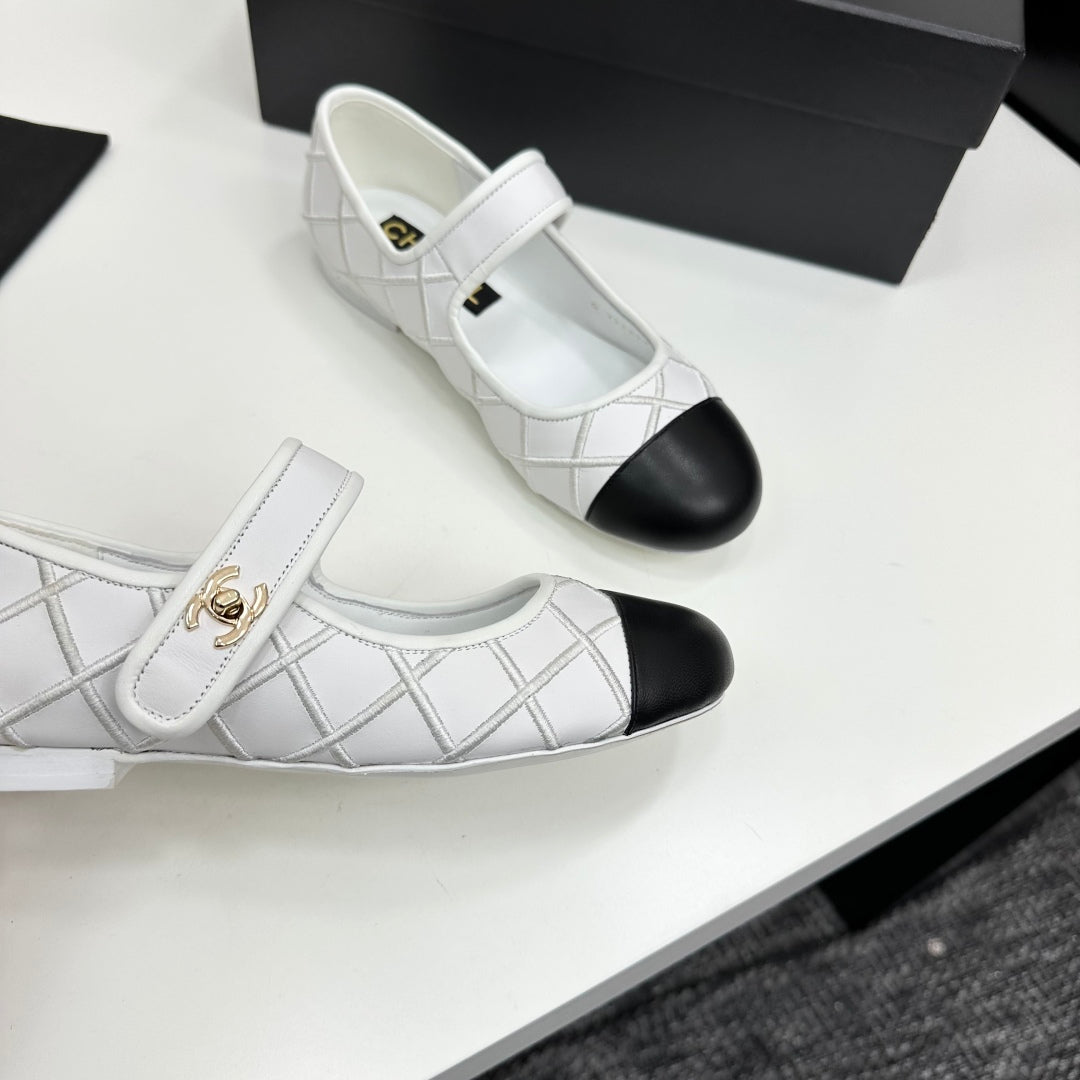 CC 25 Ballet Flat Large Logo White Quilted Calfskin