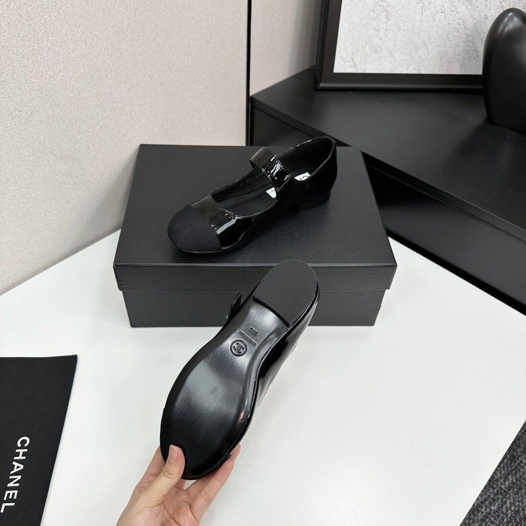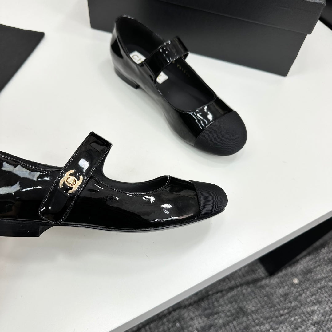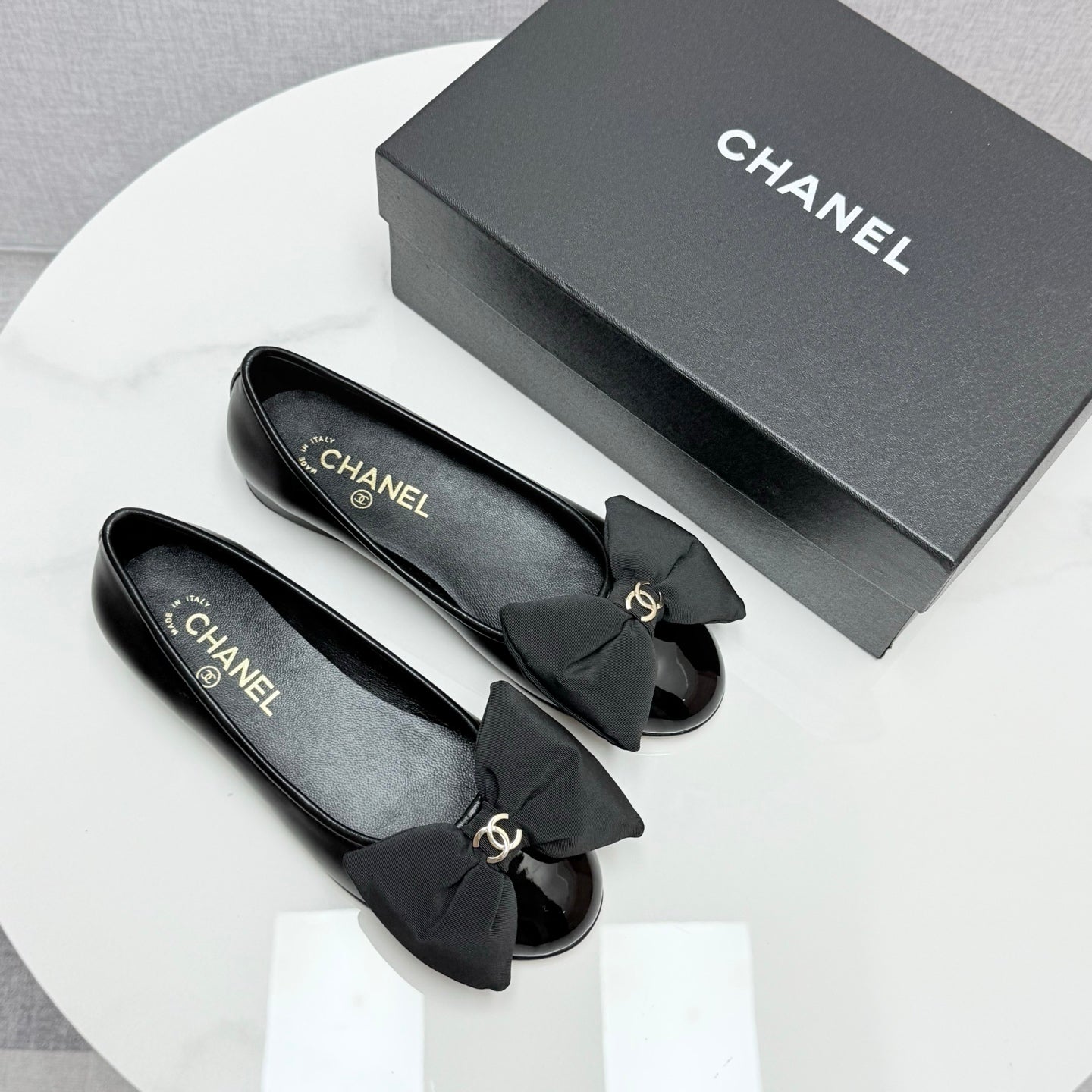CC 25P Ballet Flat Flower Black Calfskin Patent Calfskin