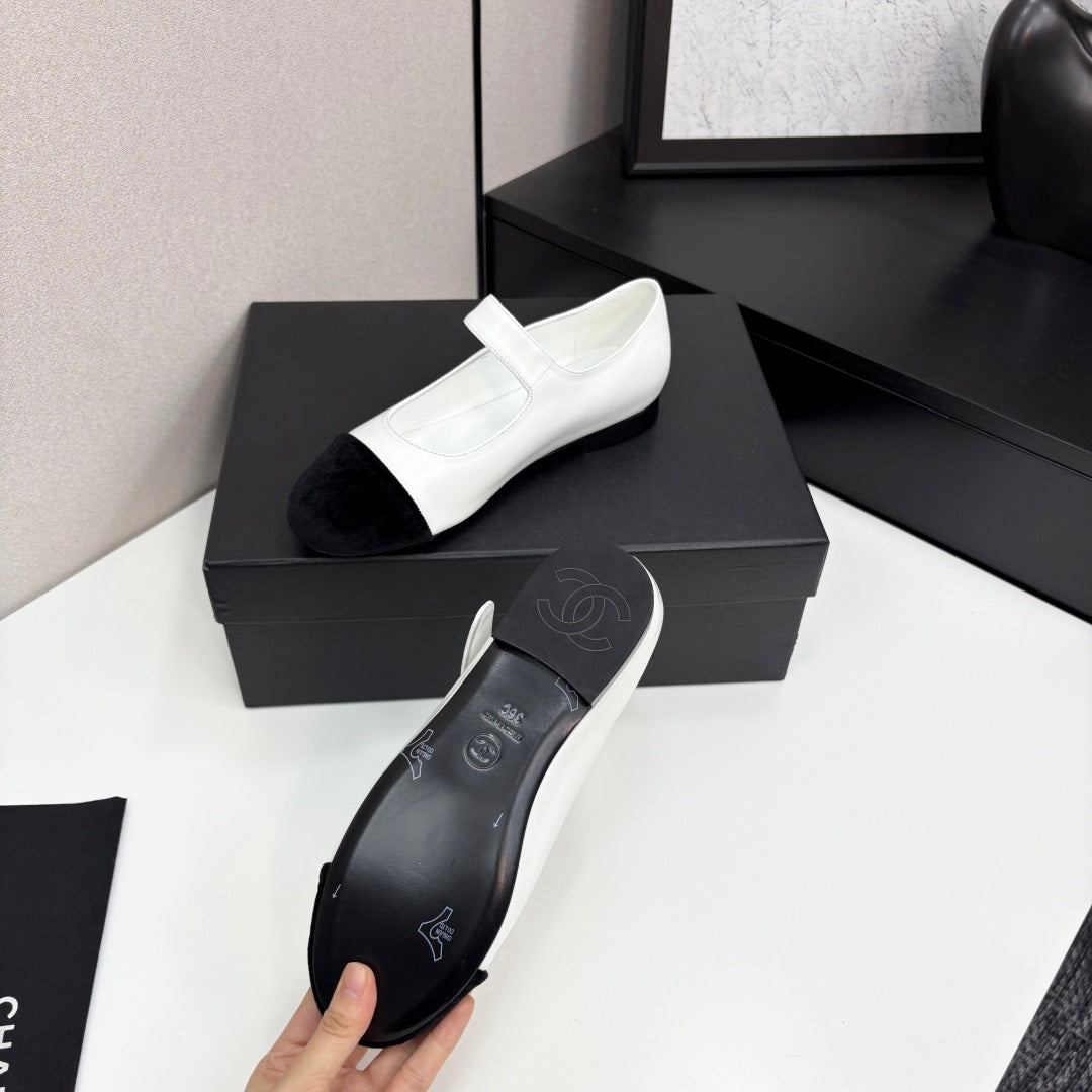 CC25 Mary Janes White Tweed And Black Cowhide 352506