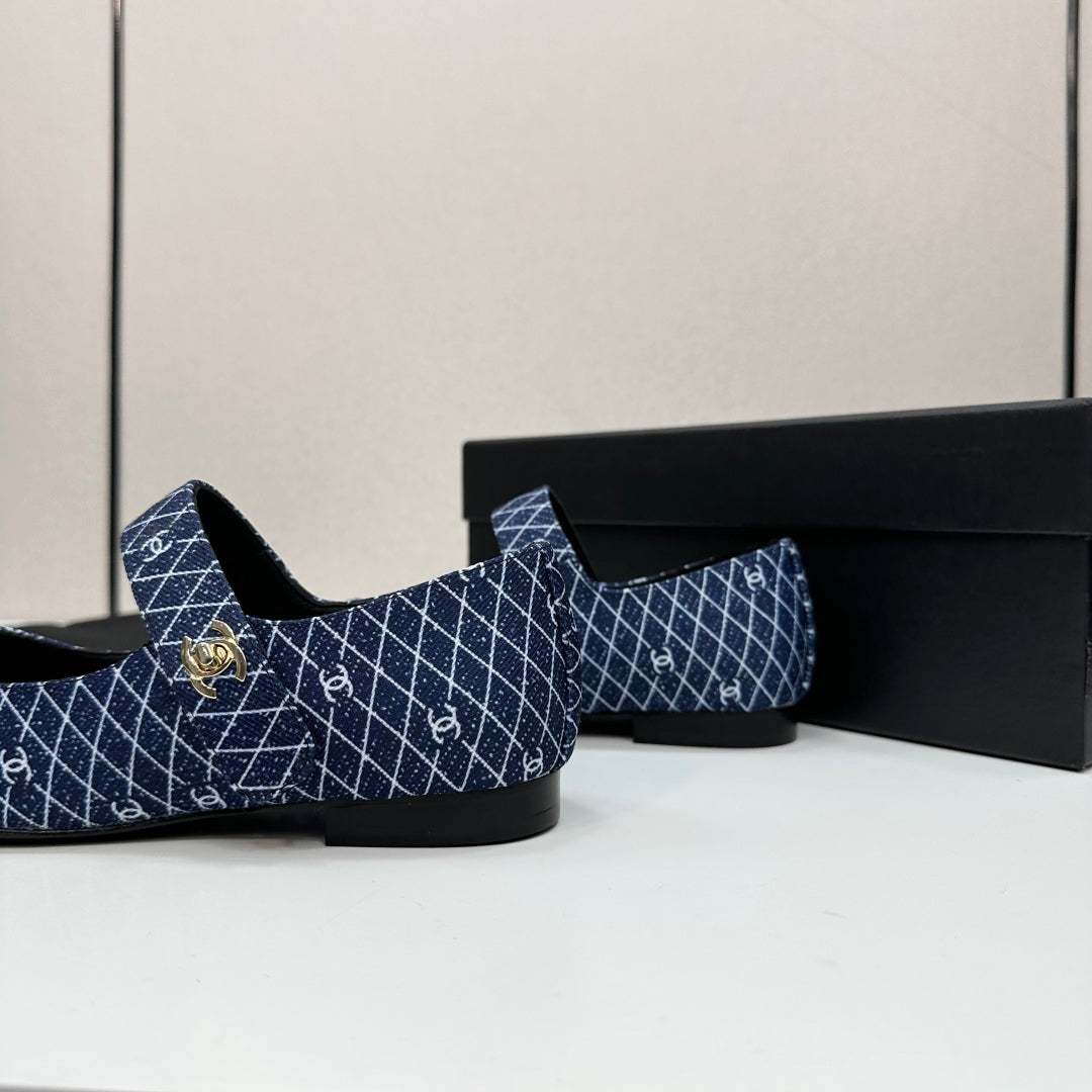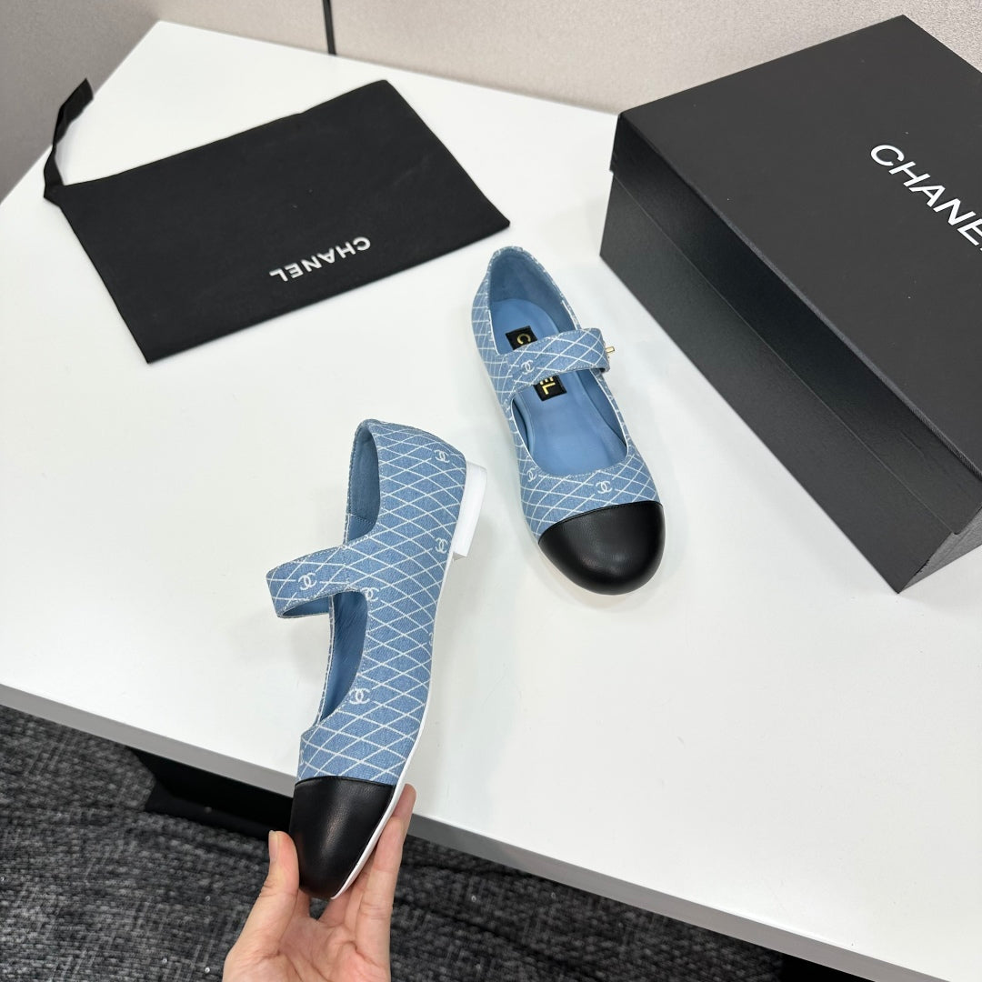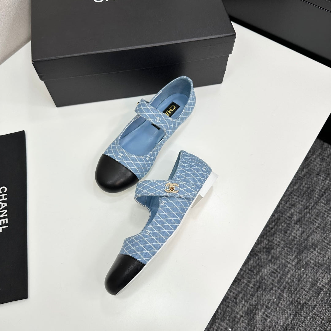 CC25 Mary Janes Light Blue Fabric And Black Cowhide 352509