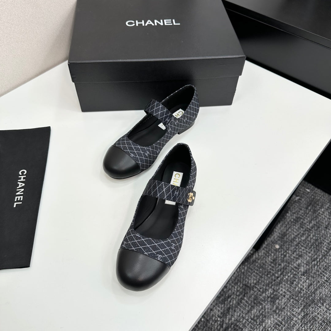 CC 25 Ballet Flat Large Logo Black Quilted Calfskin