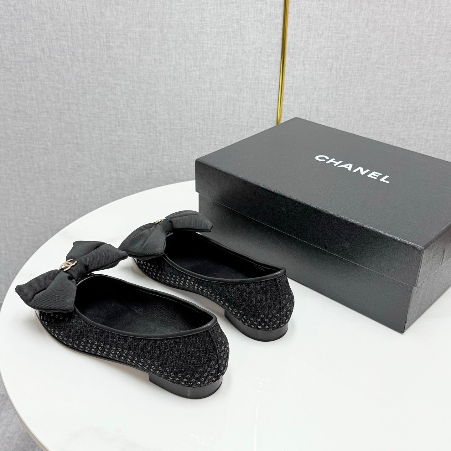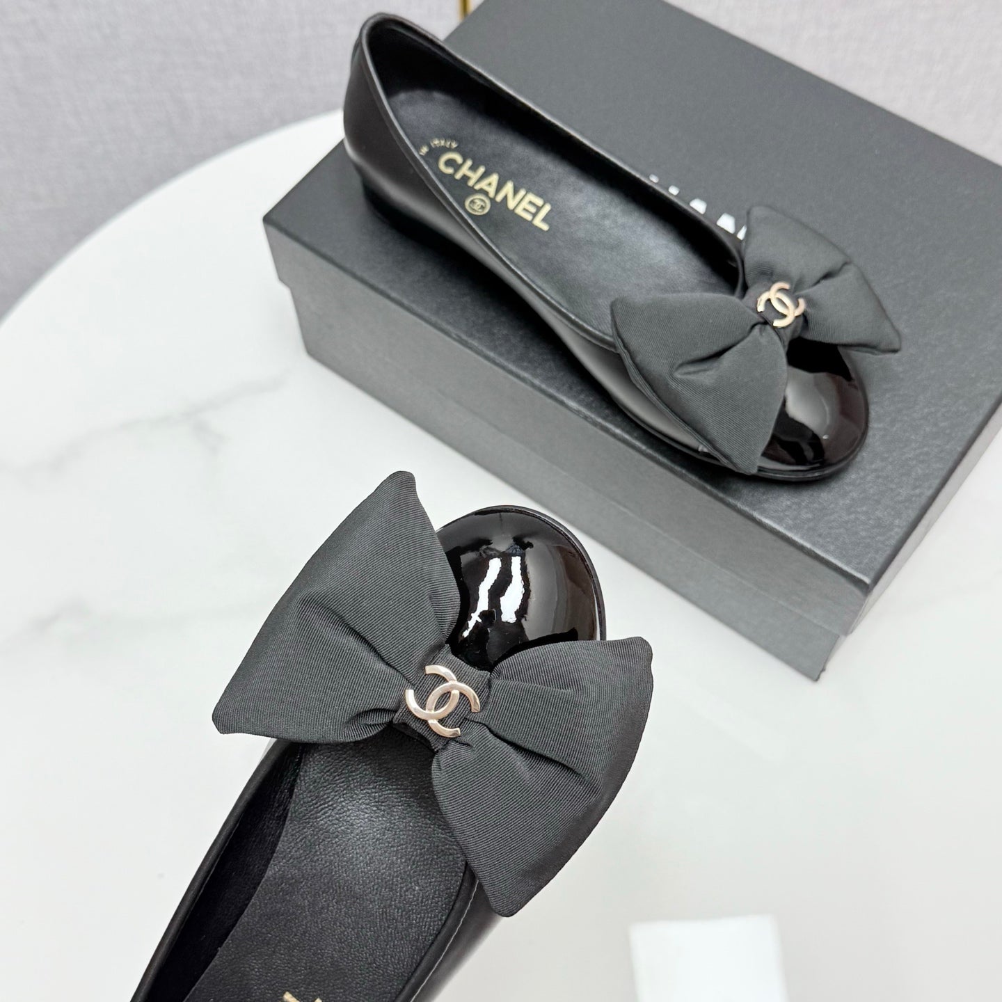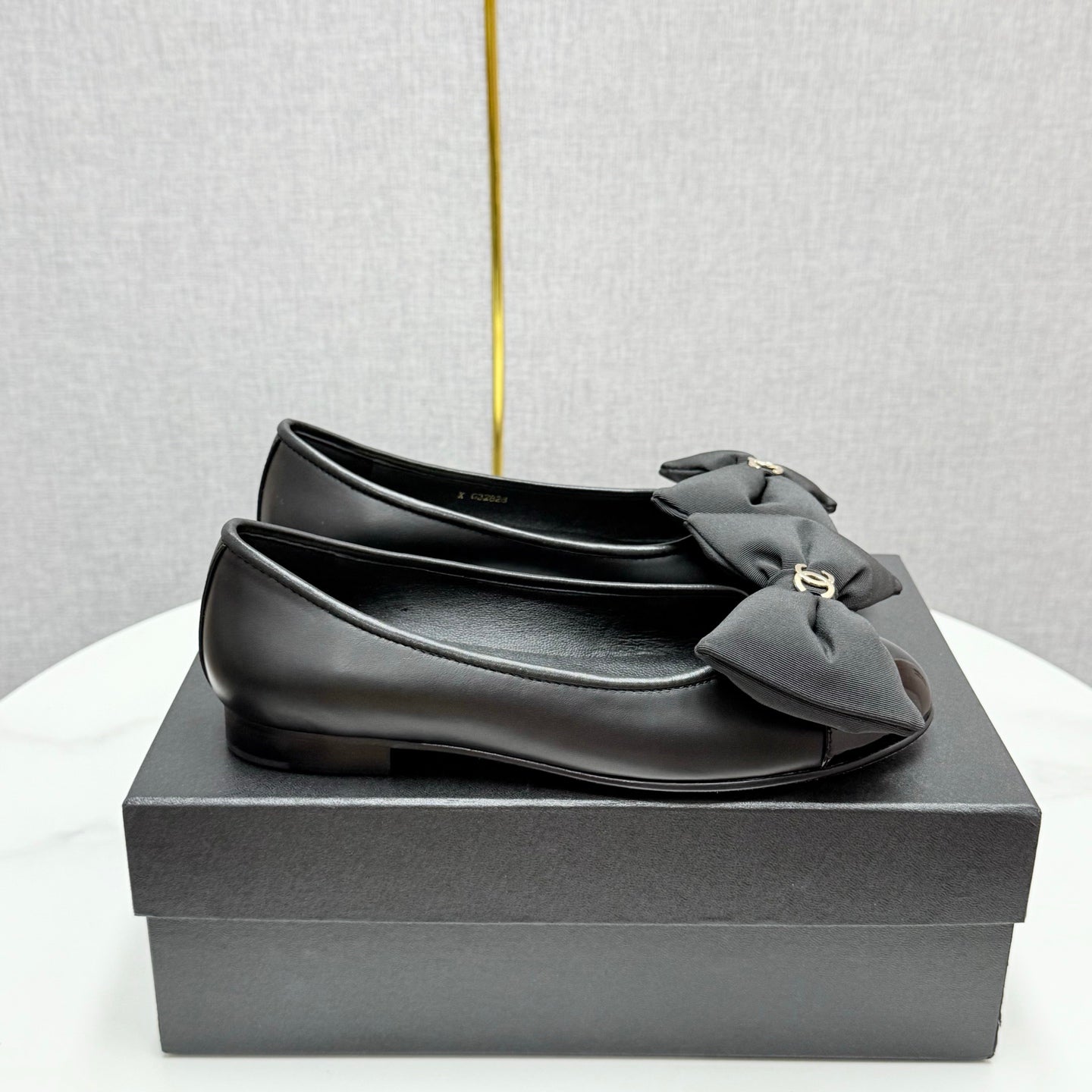 CC 25 Bow Ballet Flats Black Sheepskin And Grosgrain 368810