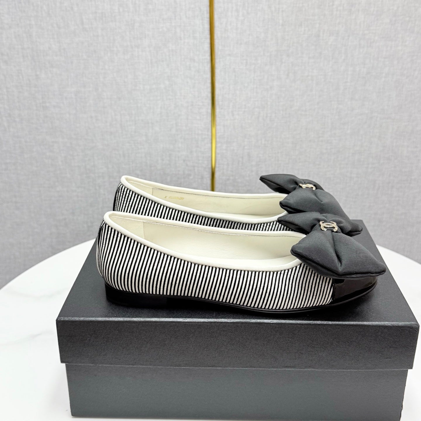 CC 25 Bow Ballet Flats Black White Canvas Striped Pattern And Grosgrain 368809