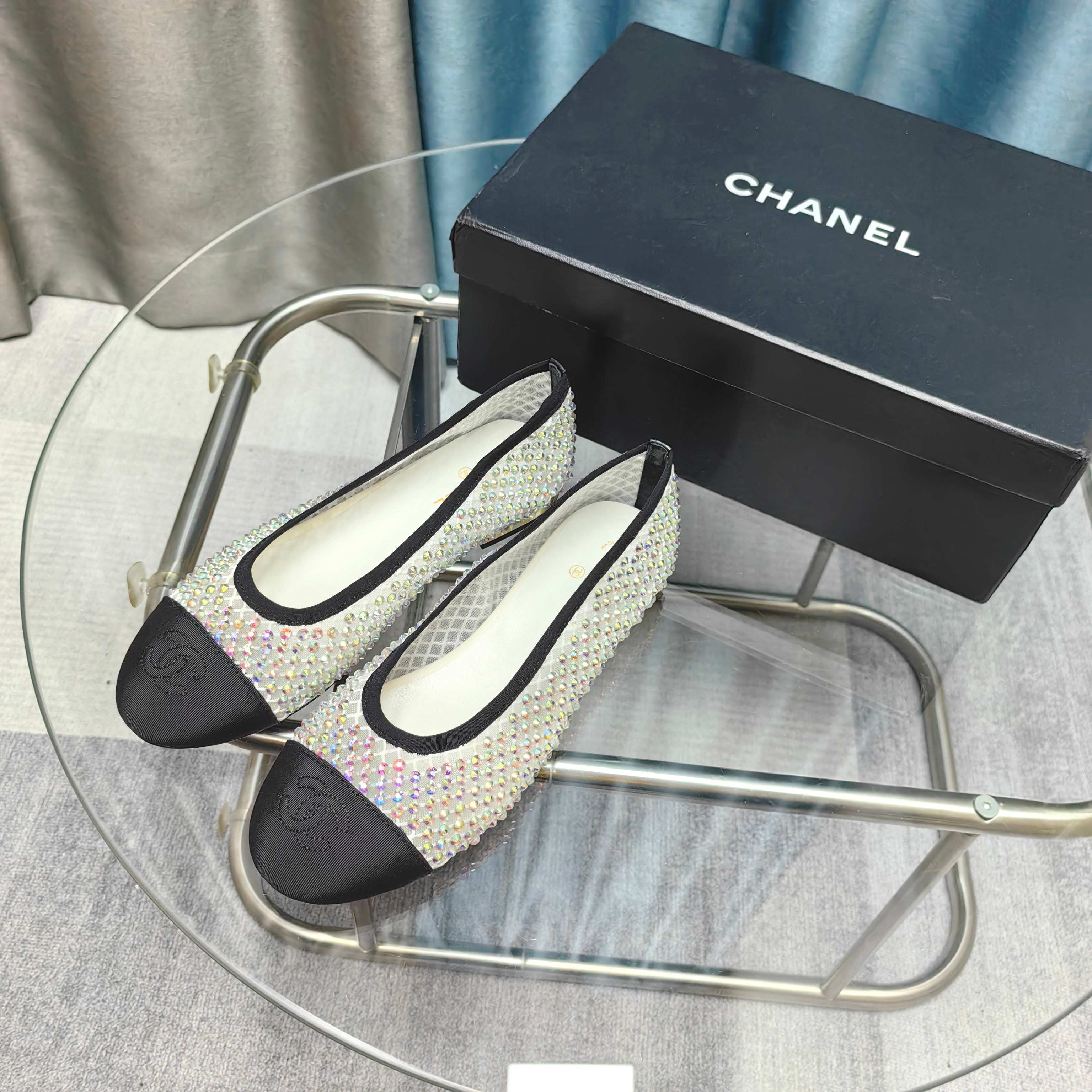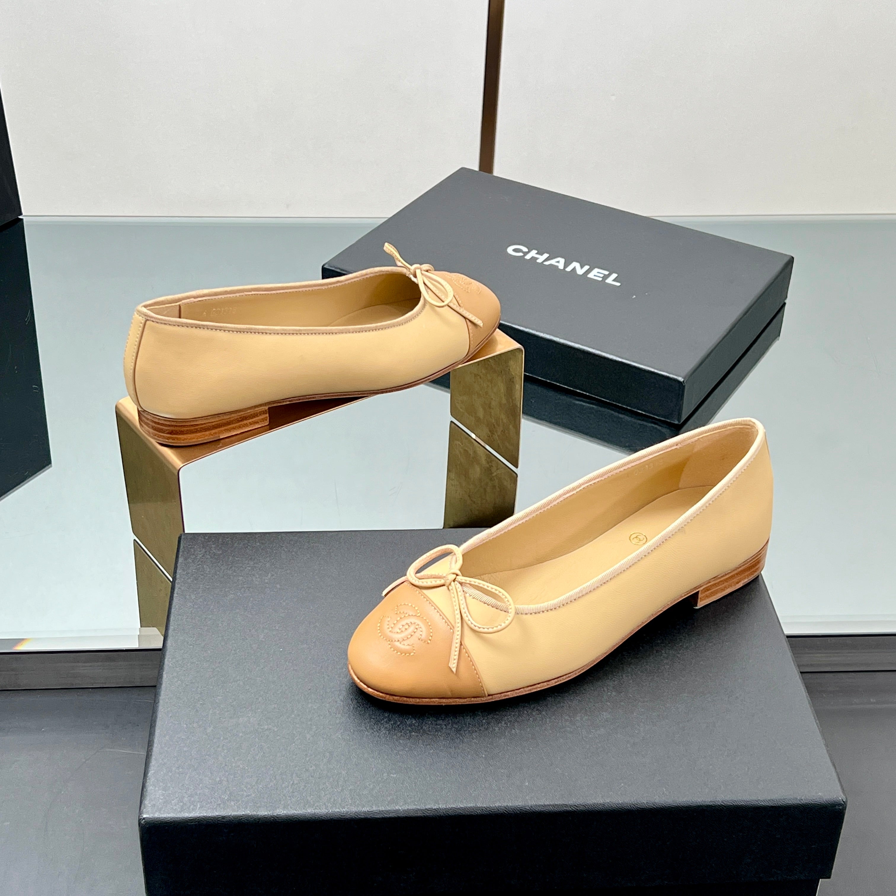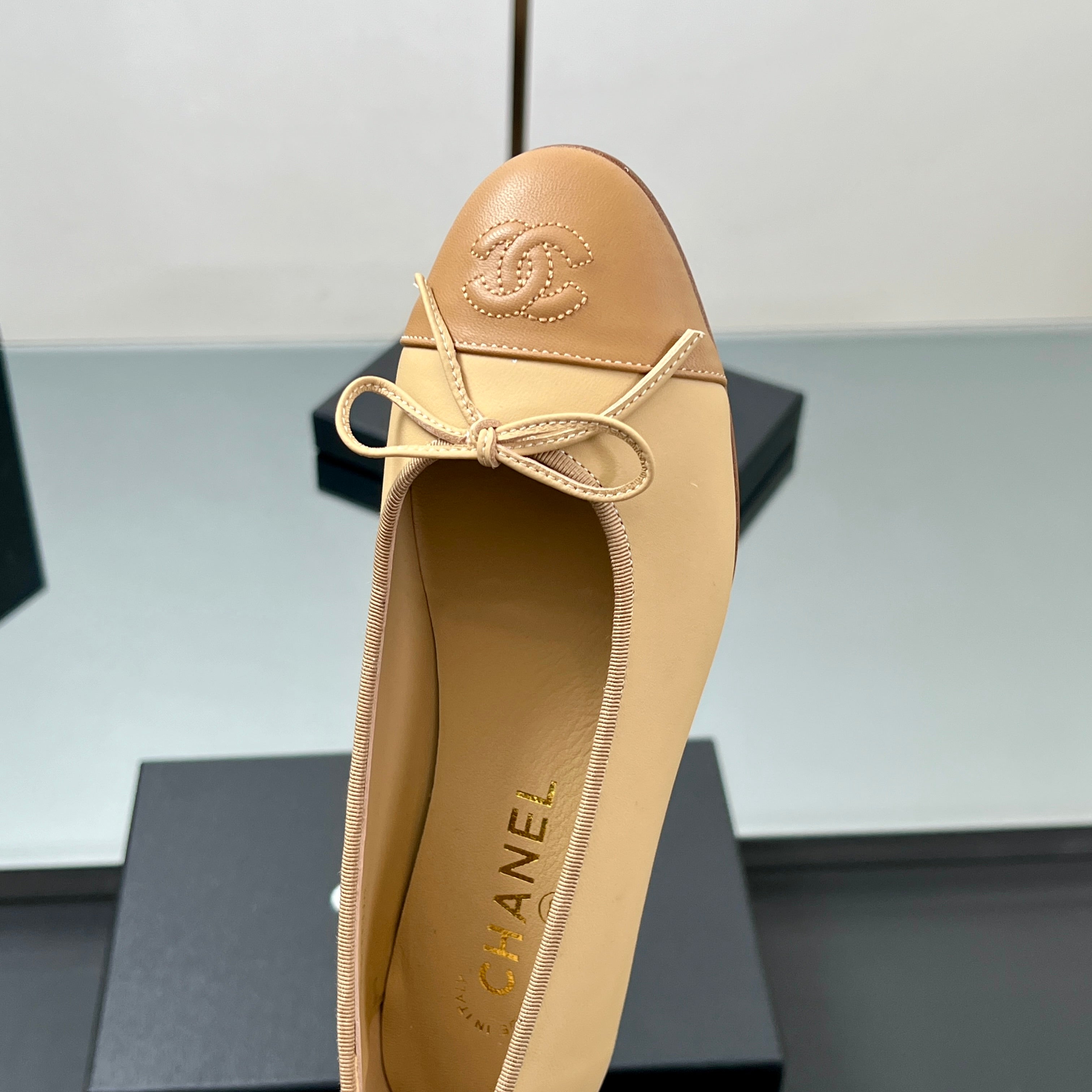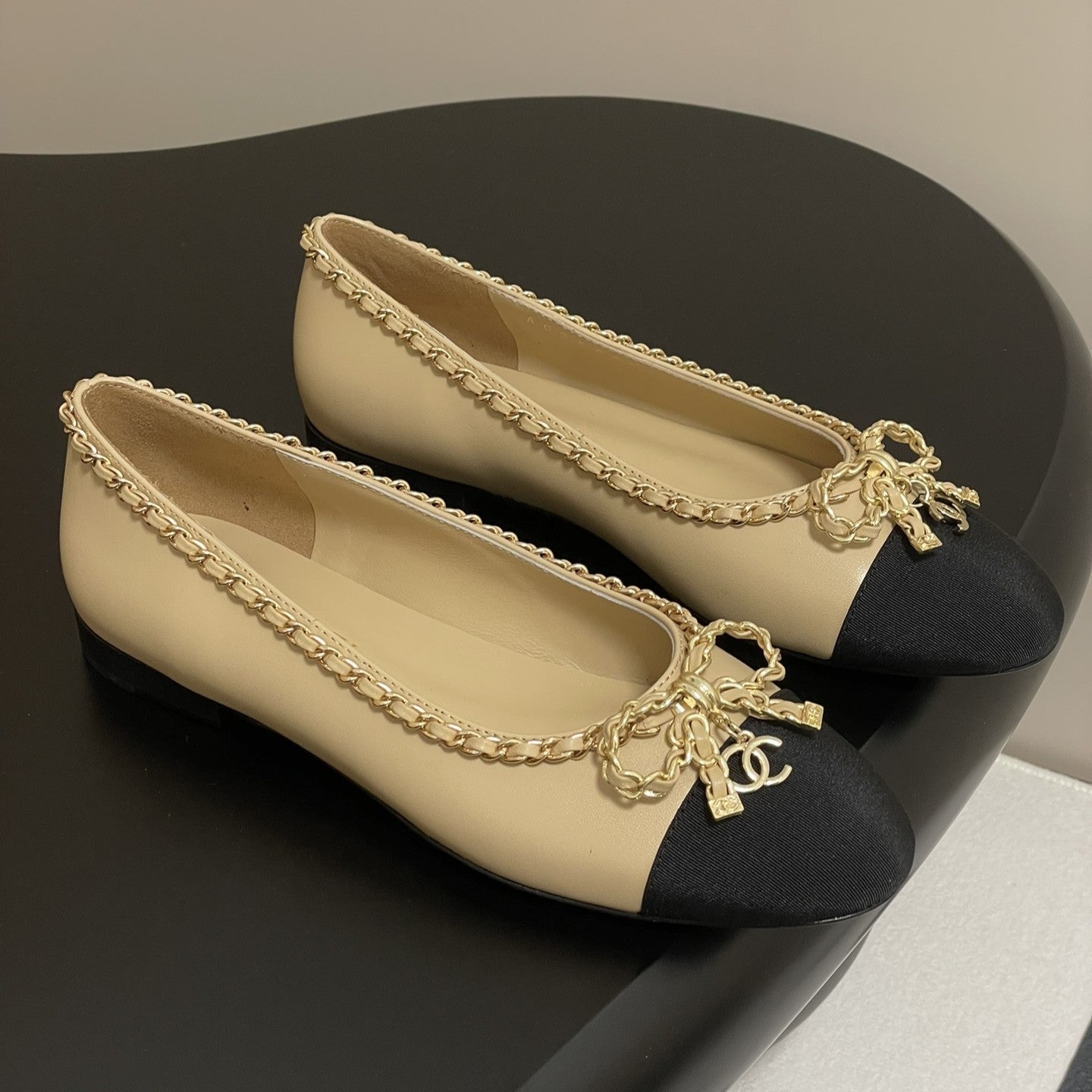 CC Classic Ballet Flats Beige Black Lambskin 282276