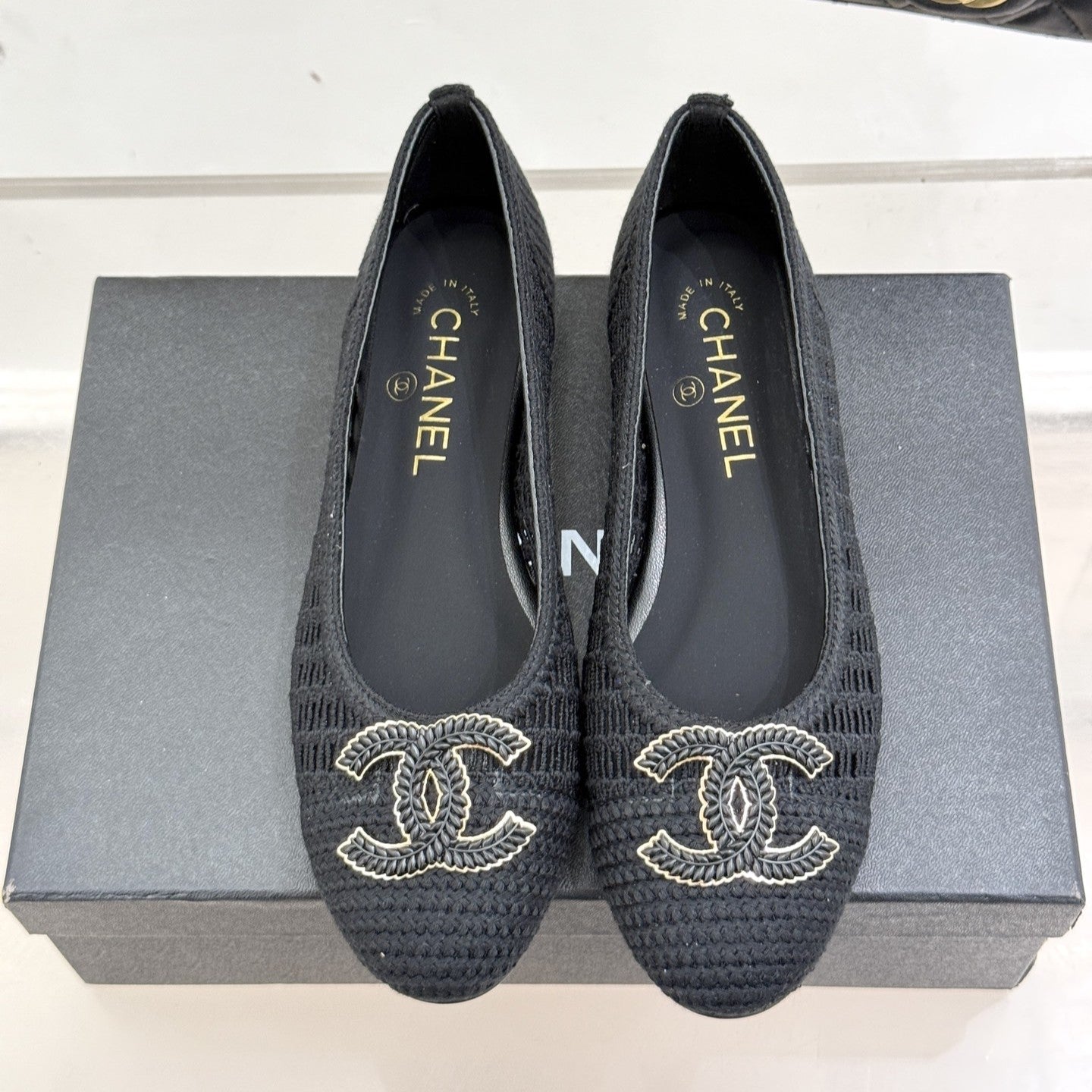 CC 25P Hollow Double C Ballet Flats 15mm Black Raffia 265643