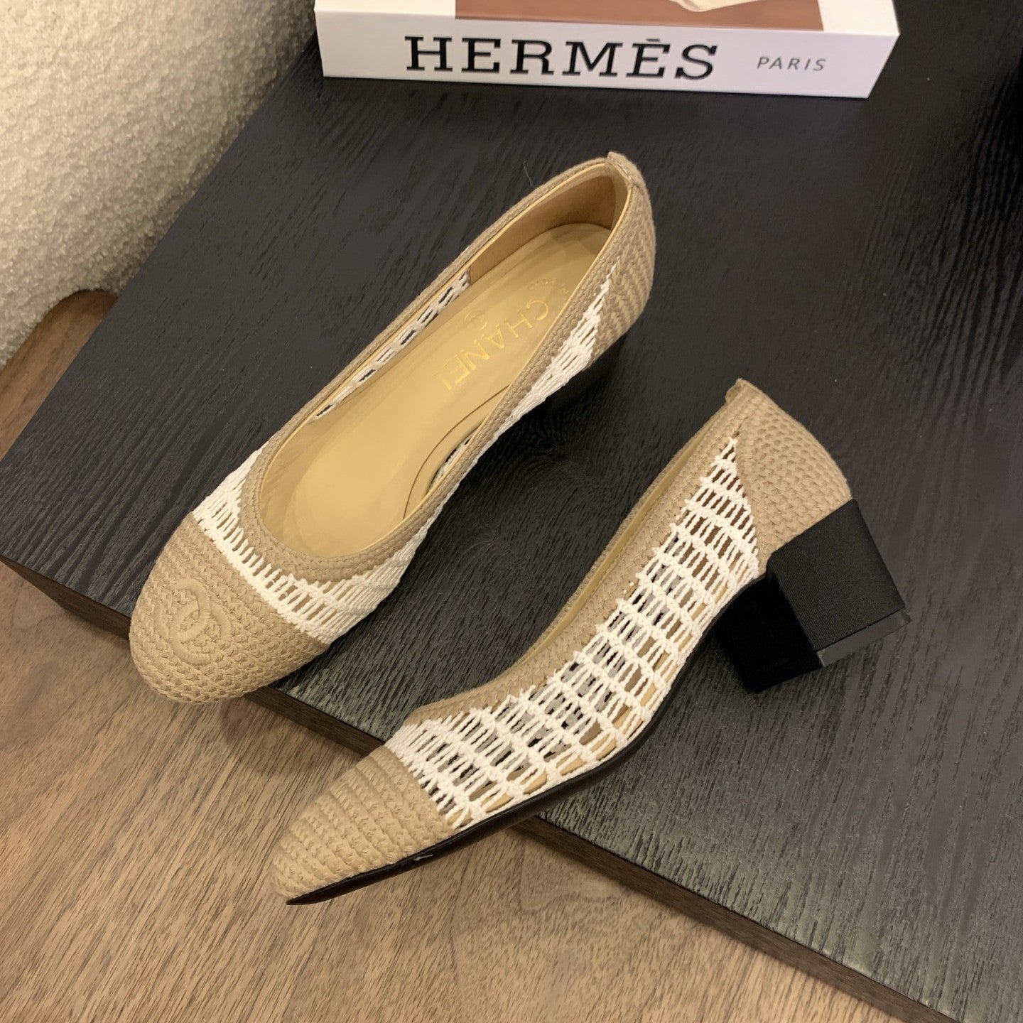 CC 25P Hollow Double C Ballet Flats 15mm Beige Black Raffia 265640
