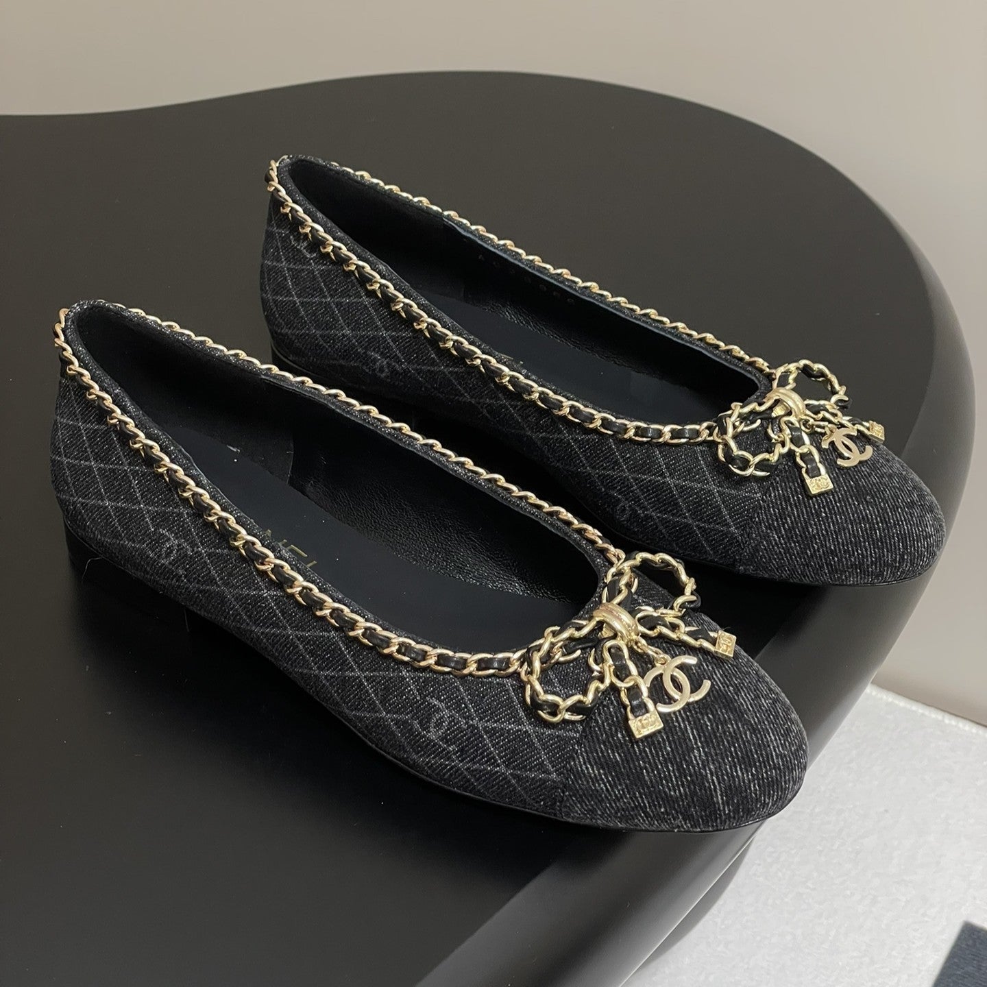 CC 25 Ballet Flat Black Grey Quilted Denim
