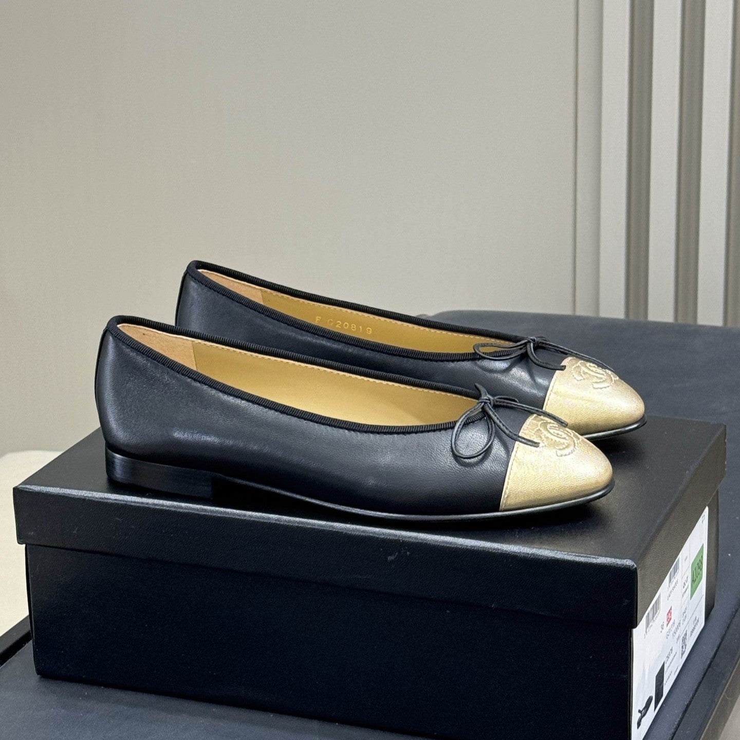 CC Classic Ballet Flats Black Gold Lambskin 282277