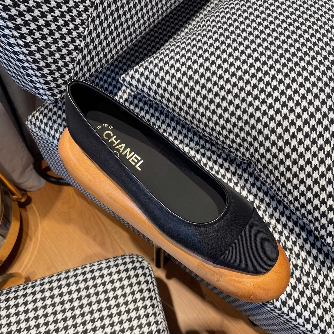 cc ballet flats in black lambskin and black patent calfskin 137426
