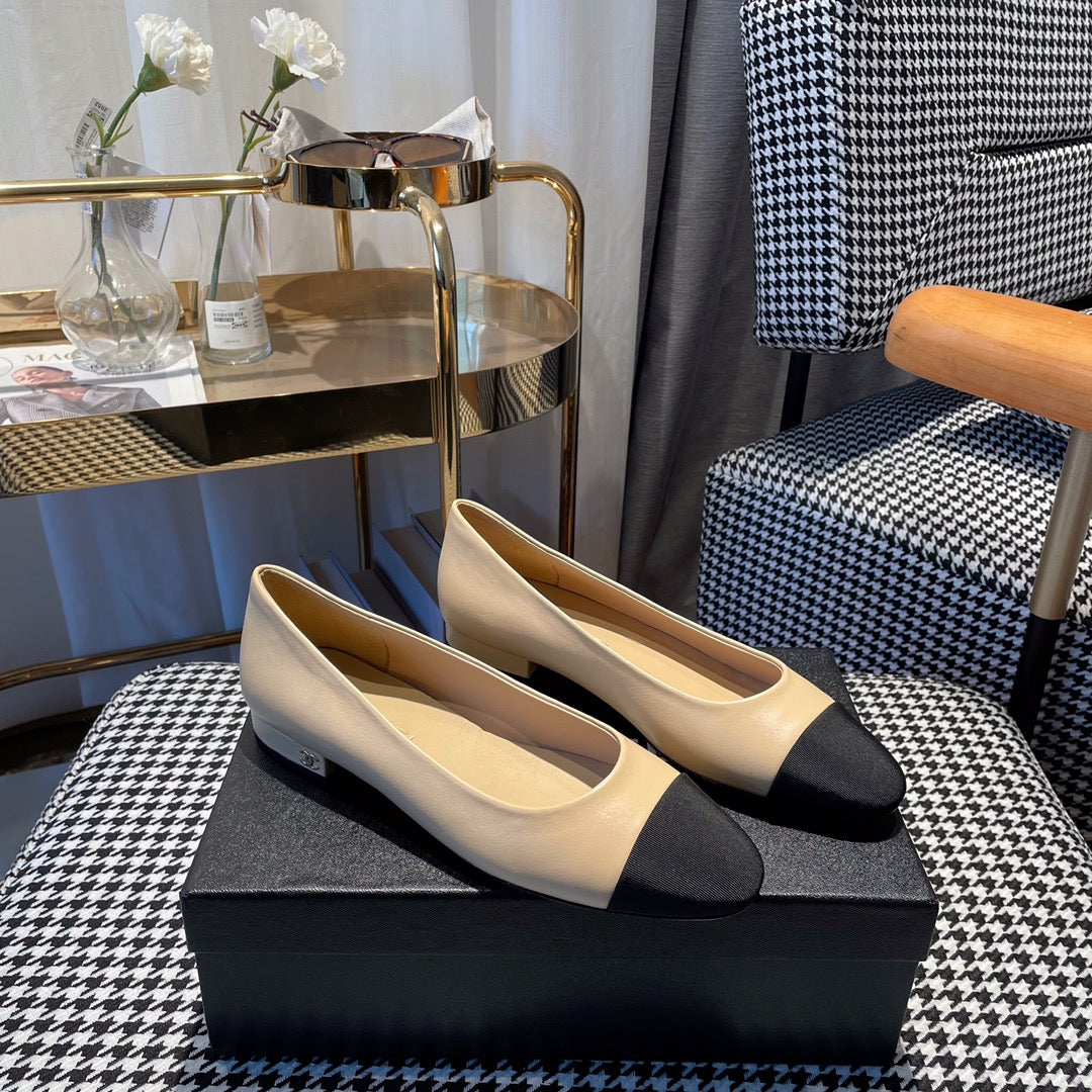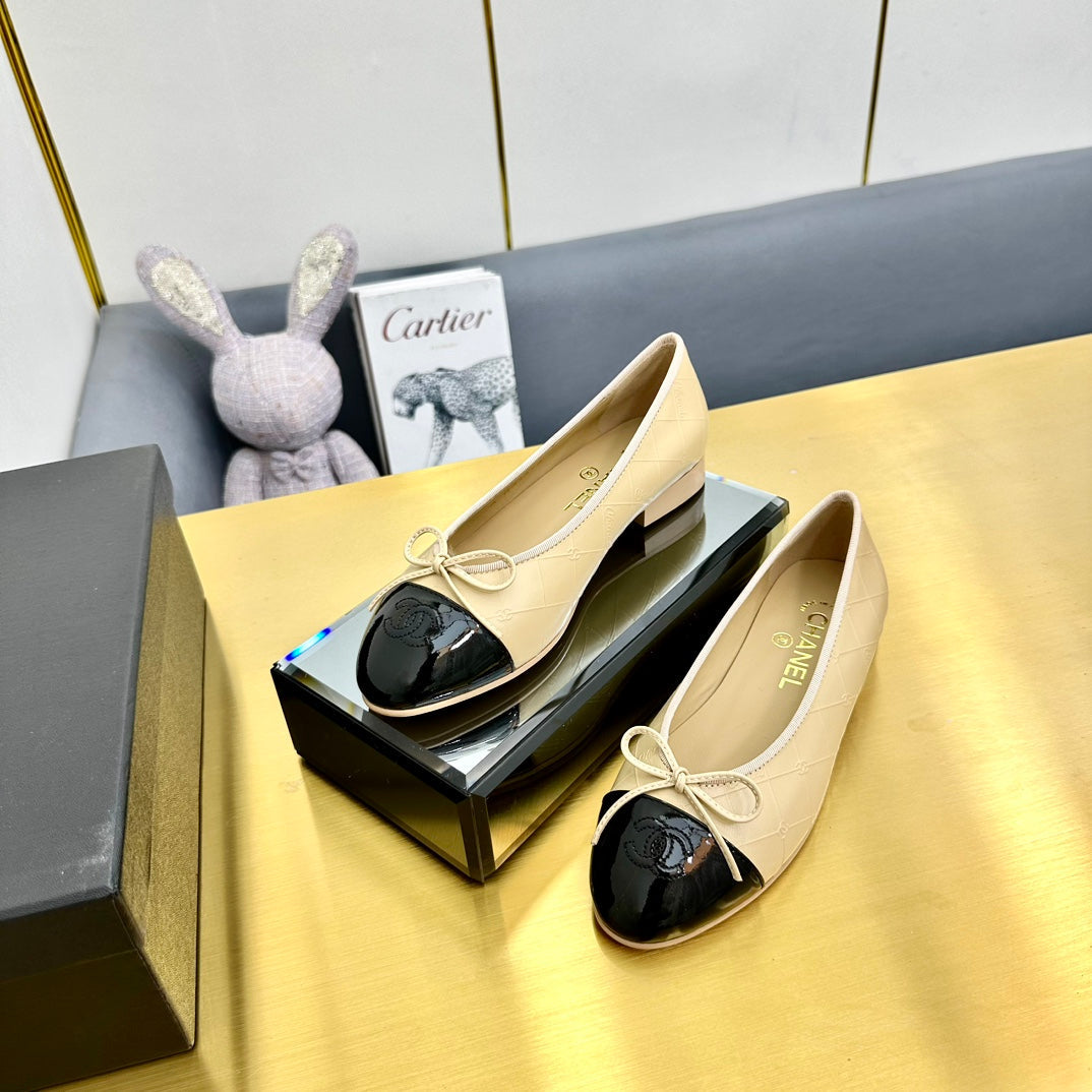 cc ballet flats in beige lambskin and black patent calfskin 137428