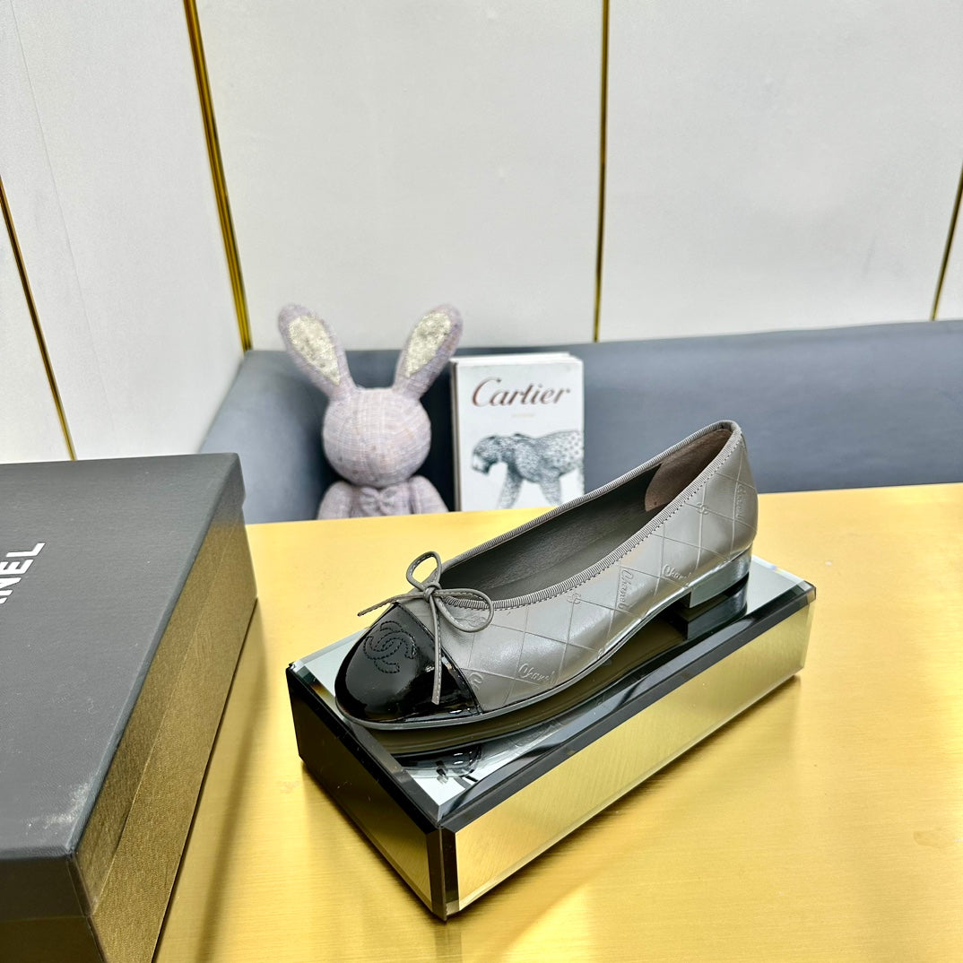 cc ballet flats in grey lambskin and black patent calfskin 137422