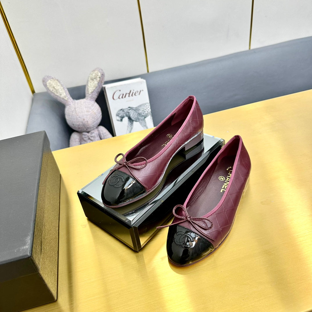 CC Ballet Flats 10mm Burgundy Black Quilted Lambskin