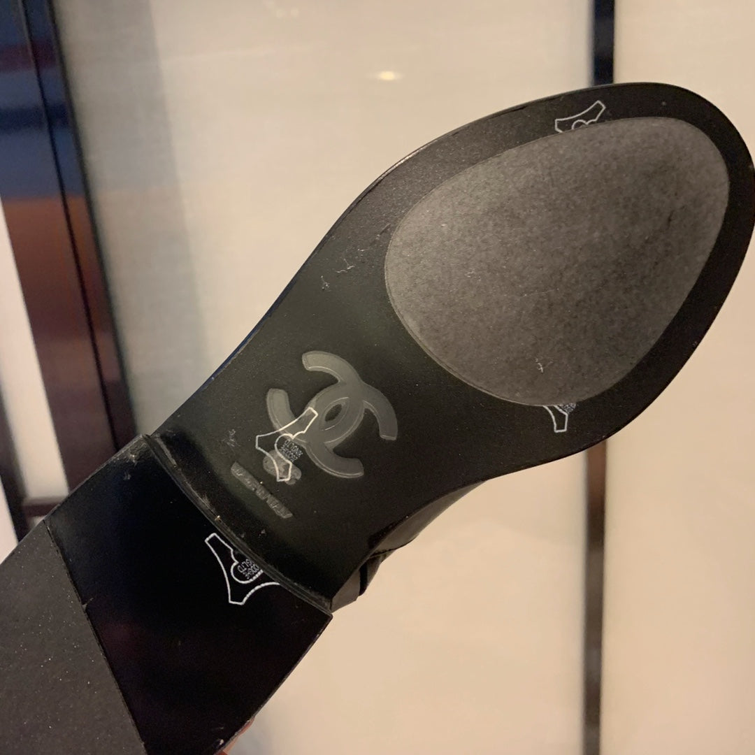 CC 25 Short Boots With Chain 55mm Black Cowhide Grosgrain 374029