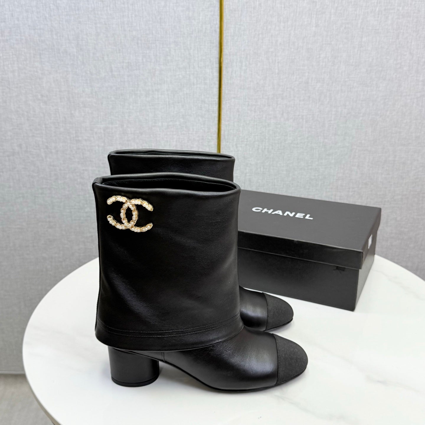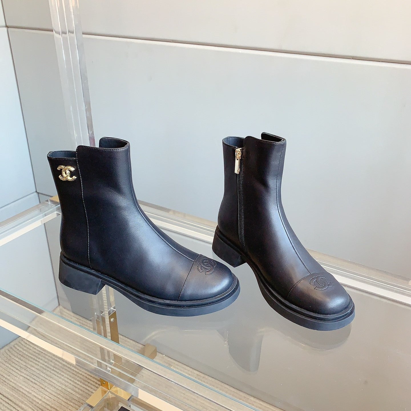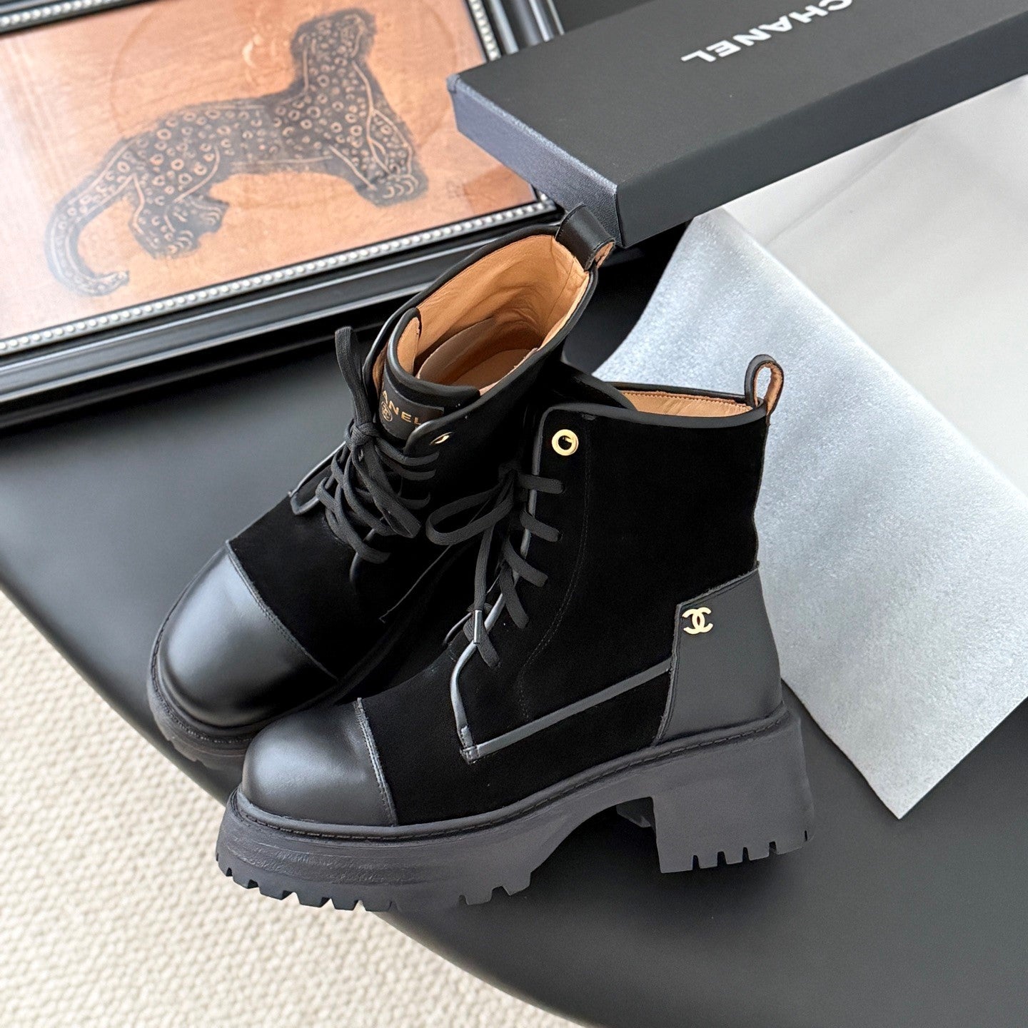 CC Short Boots Black Suede Lining Wool And Lambskin