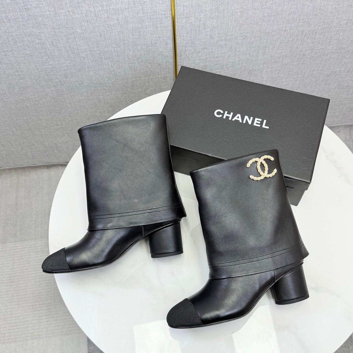 Chanel Double C Colorblock Heel Long Boot Black Sheepskin 465419