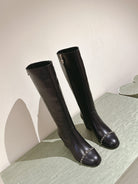 CC 24 FW Knee-High Boots with Chain 70mm Black Cowhide 447186