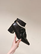 CC 24A Pearl Bow Ankle Boots 65mm Black Sheepskin 447468