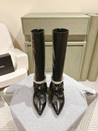 CC 24A Pearl Bow Knee-High Boots 65mm Black Sheepskin 447462