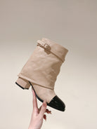 CC 24ss Fold-Over Low Boots 40mm Beige Quilted Sheepskin 447477