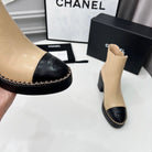CC 25 Chelsea Ankle Boots With Chain 85mm Beige Black Sheepskin 374034