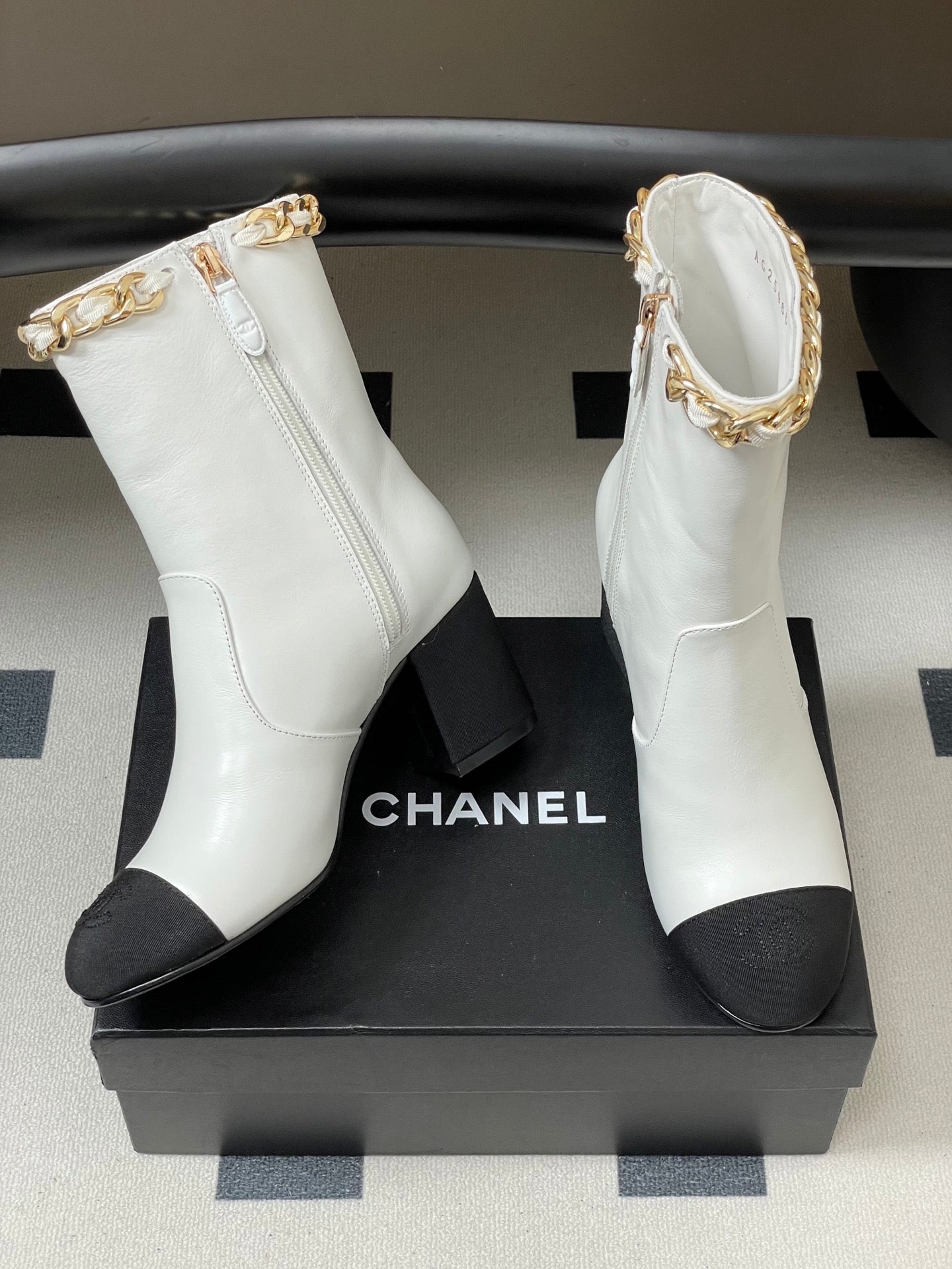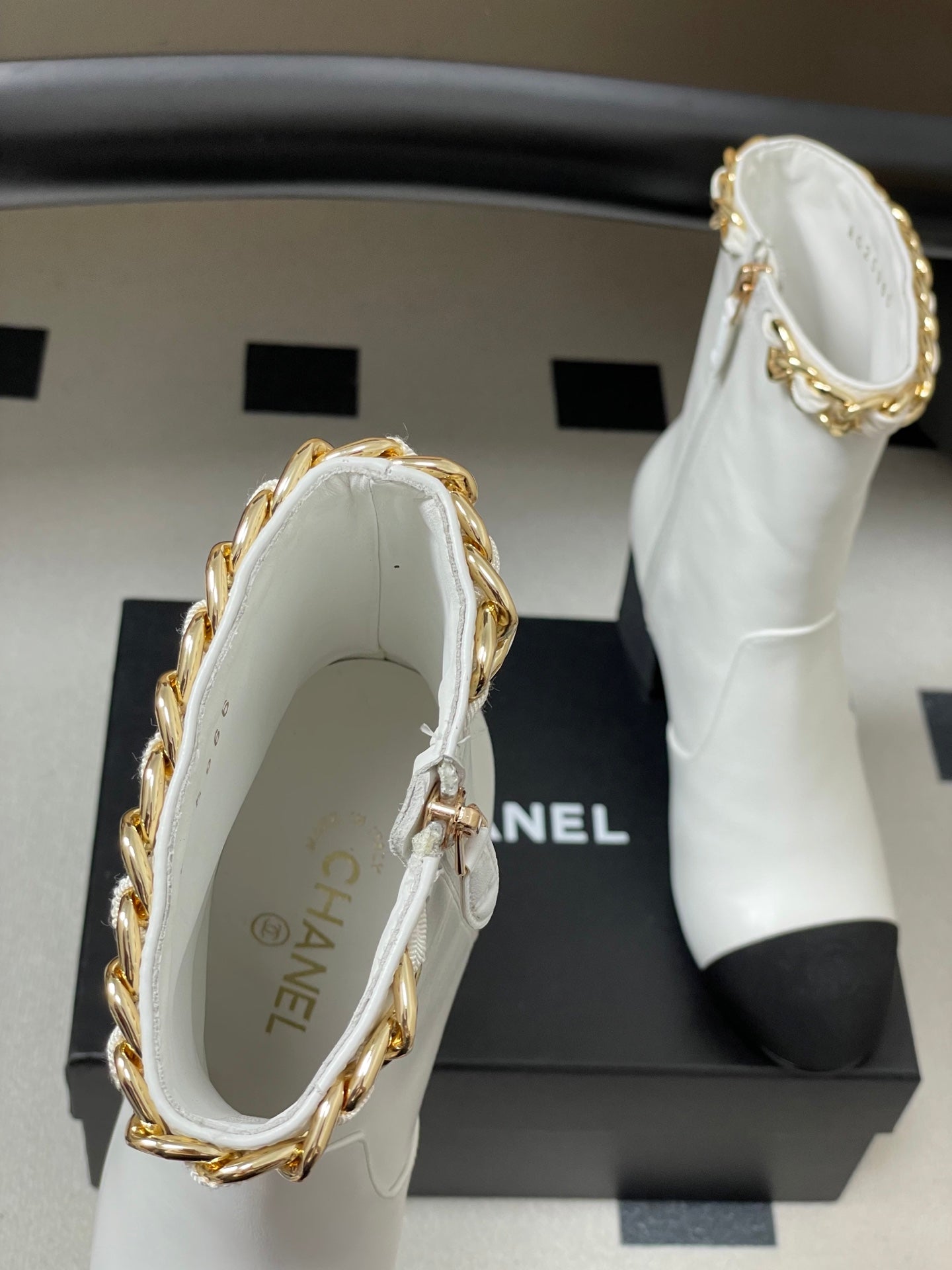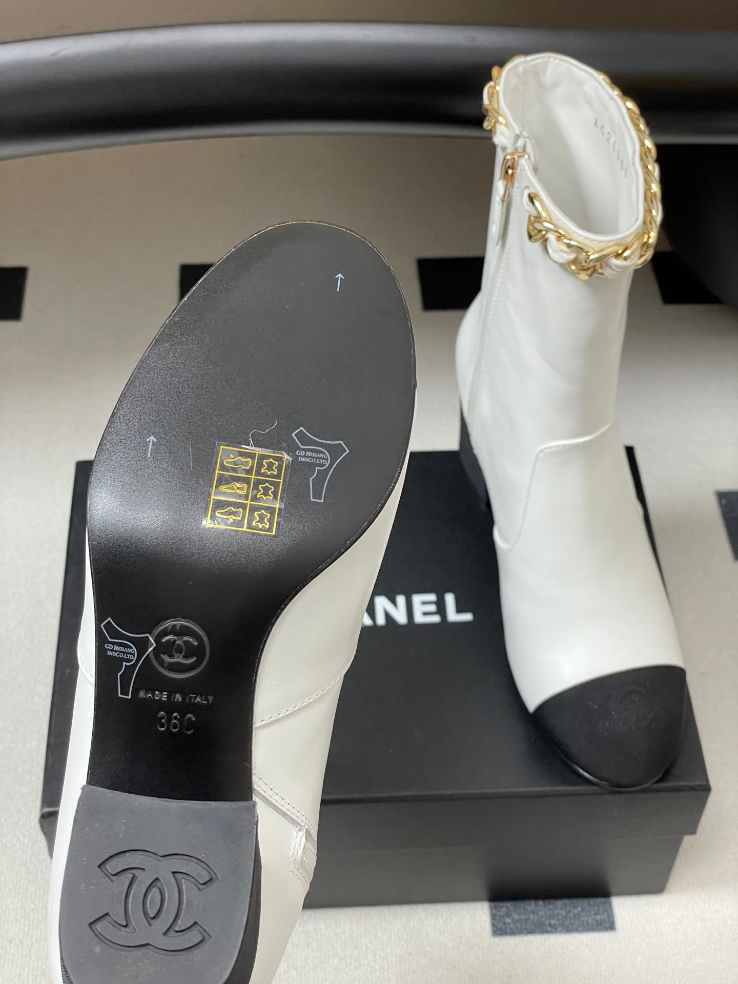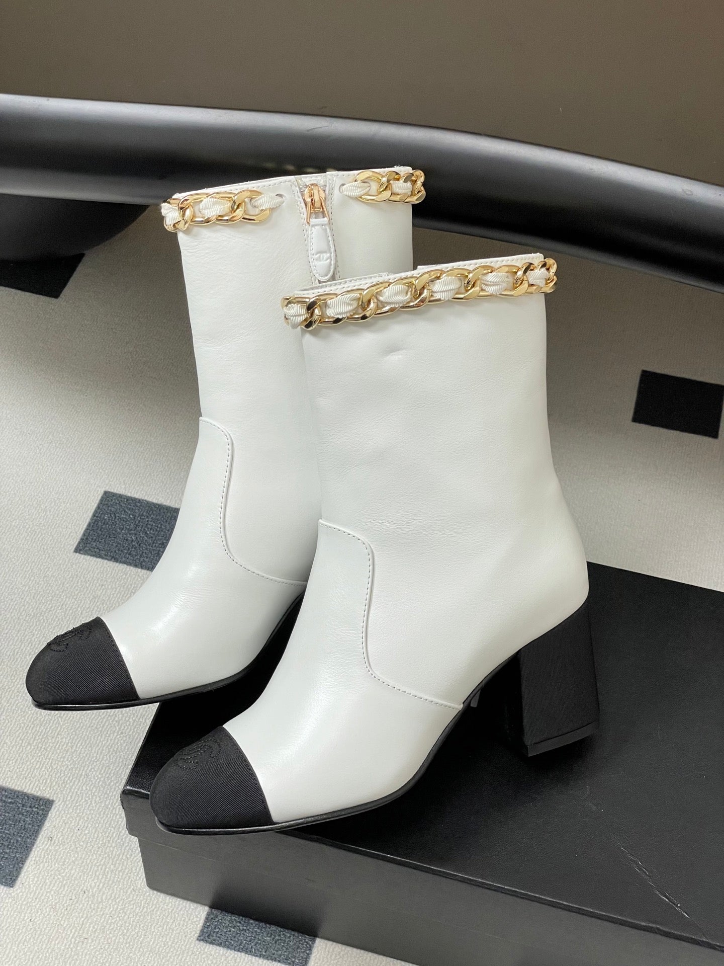CC 25B Chain Short Boot 70mm Black White Denim Cowhide 423148