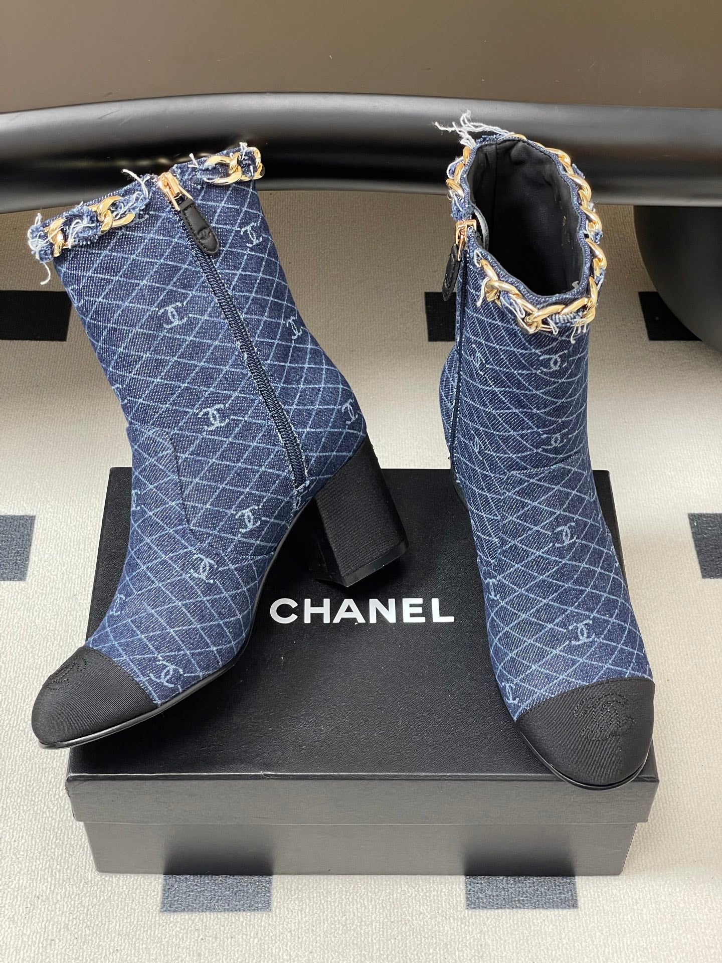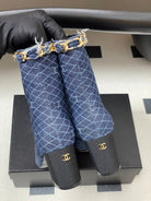 CC 25B Chain Short Boot 70mm Black Blue Denim 423145